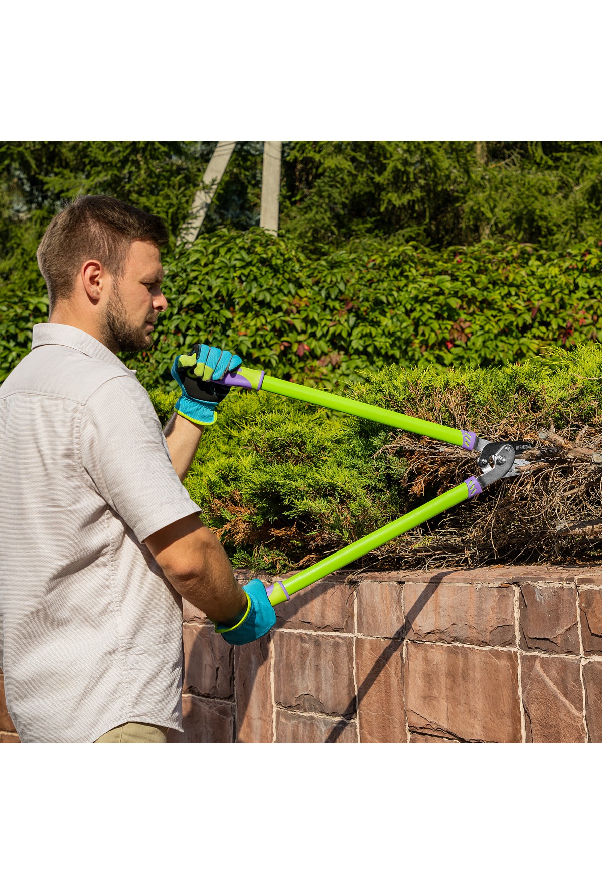 - Удобная работа — благодаря рифленой поверхности наковальни сучкорез надежно удерживает ветку во время обрезки.