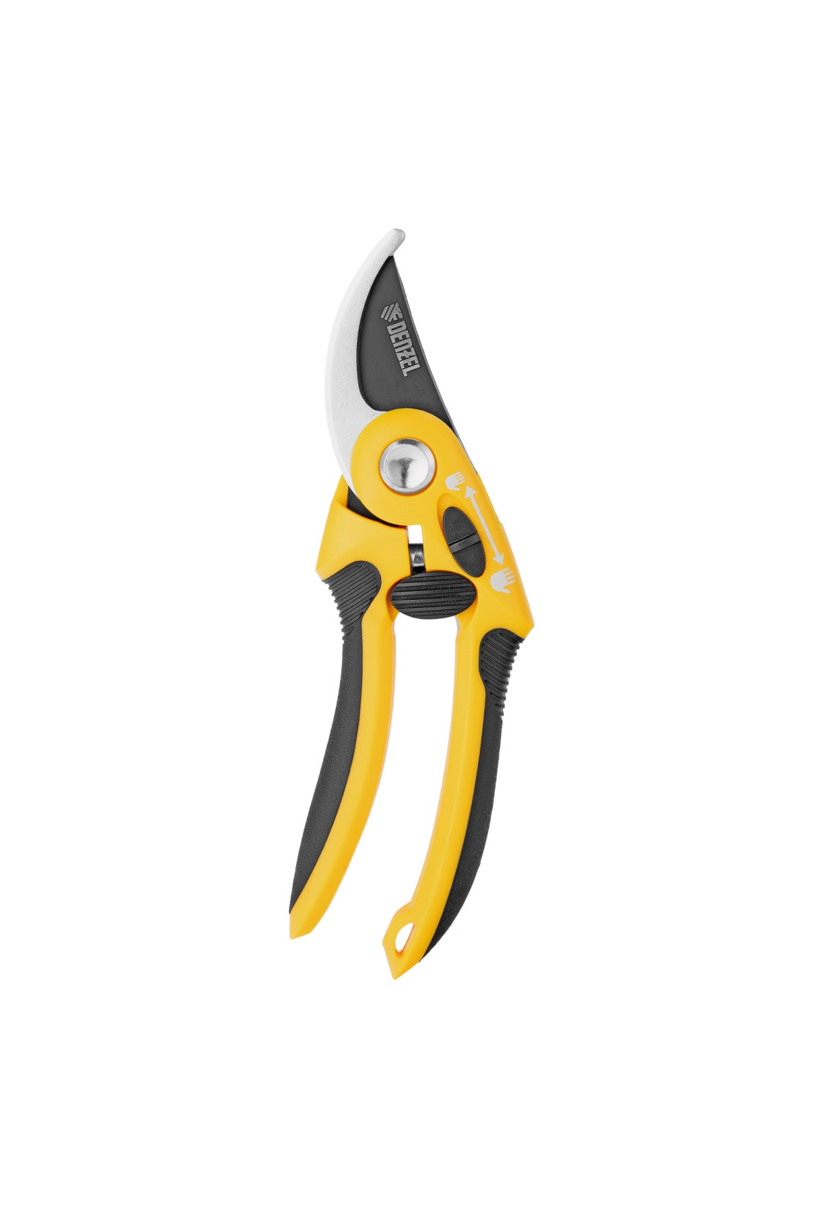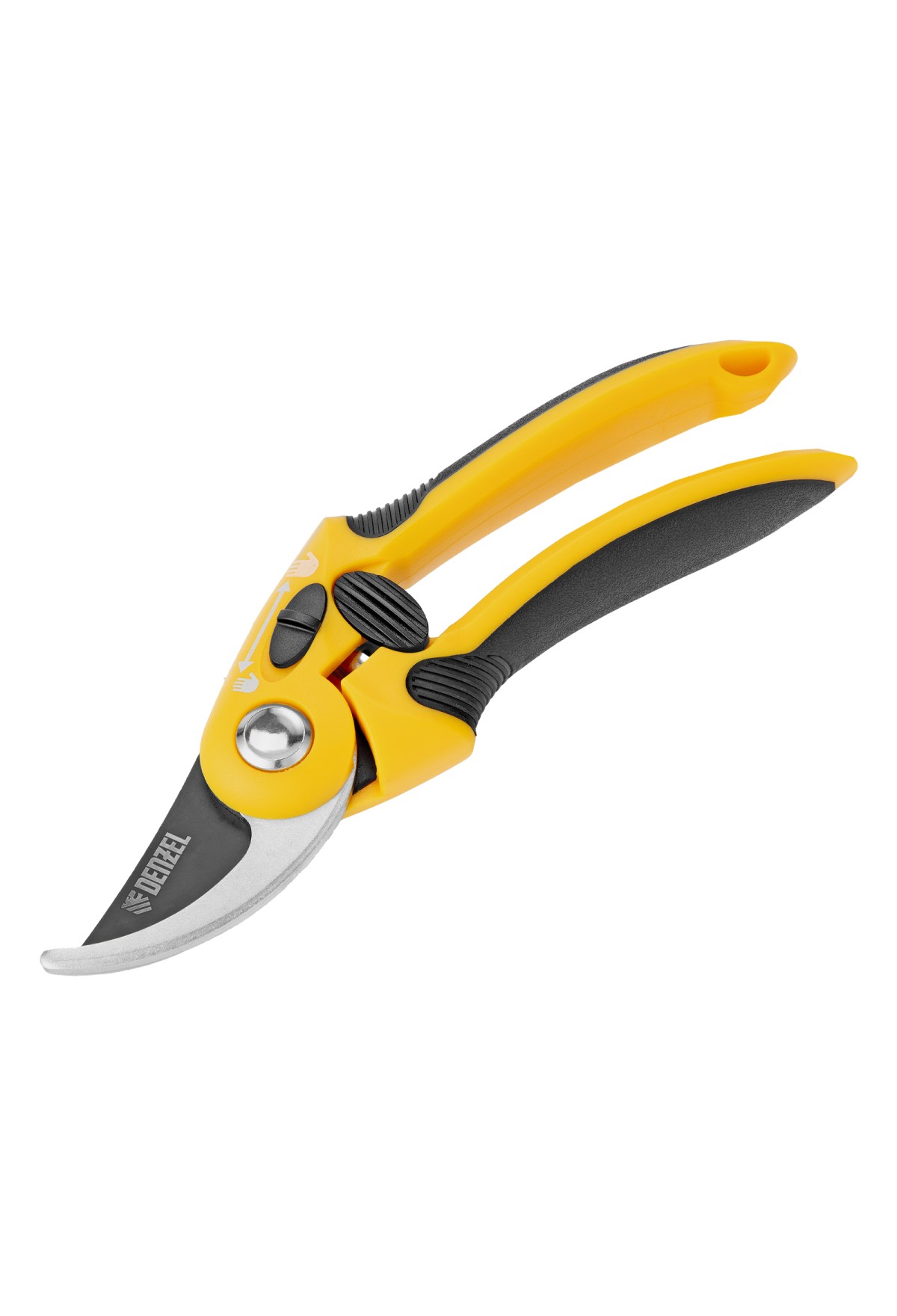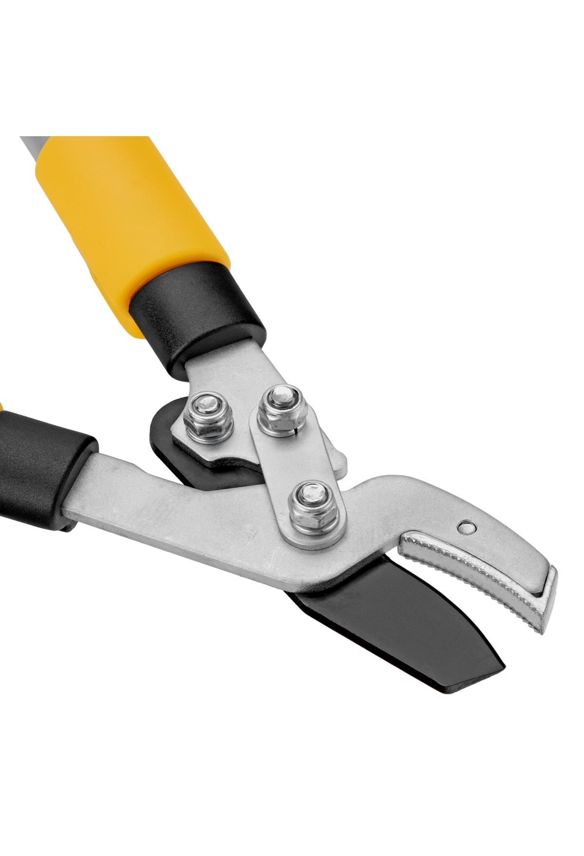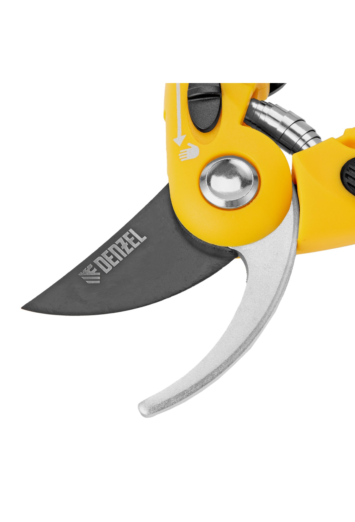 - Надежная фиксация — стальная опорная наковальня сучкореза с рифленой поверхностью предотвращает выскальзывание срезаемых веток.