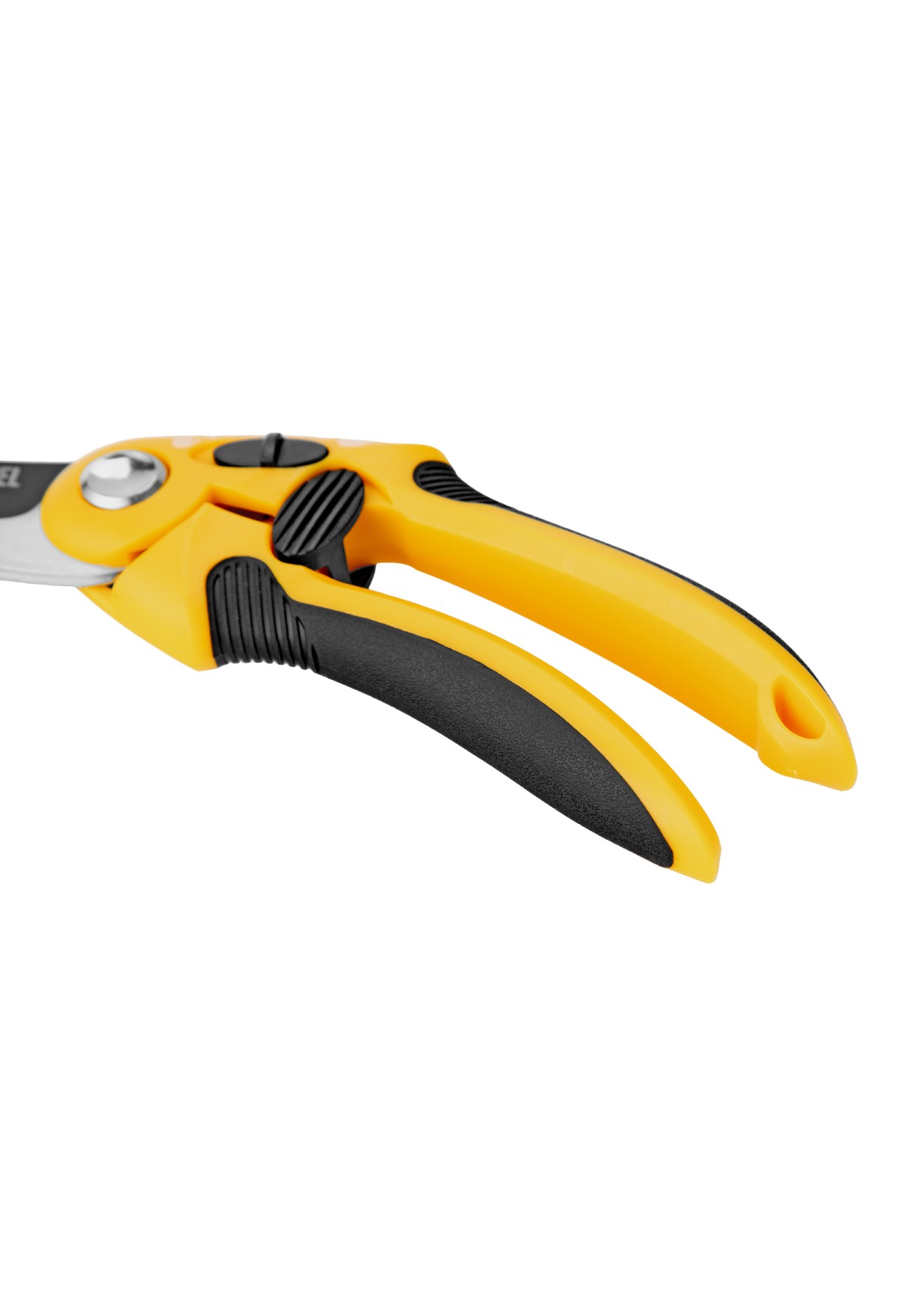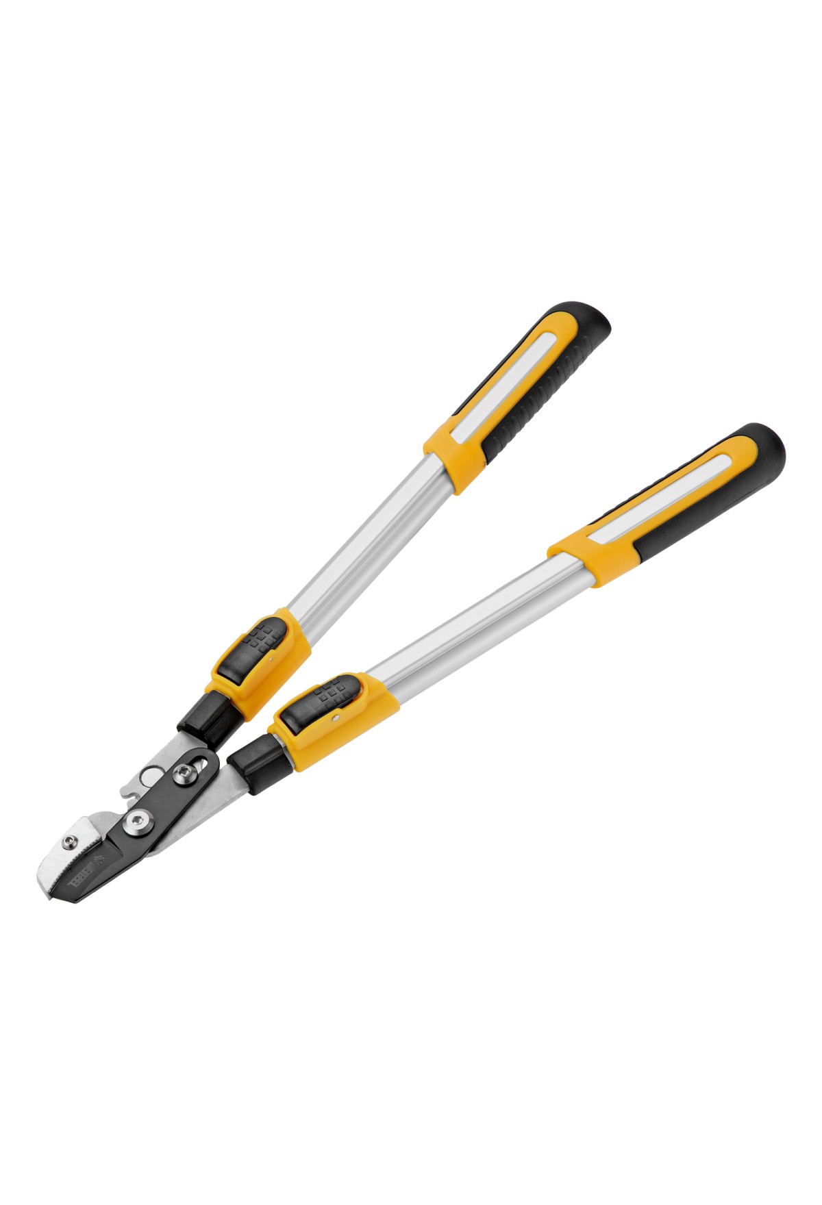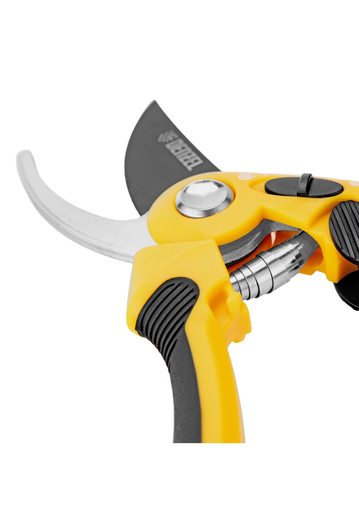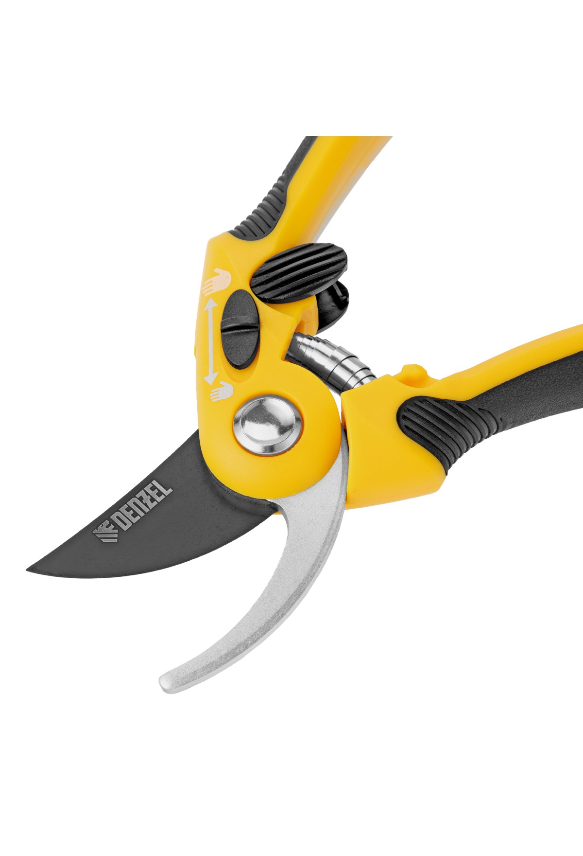 - Надежная фиксация — стальная опорная наковальня сучкореза с рифленой поверхностью предотвращает выскальзывание срезаемых веток.
