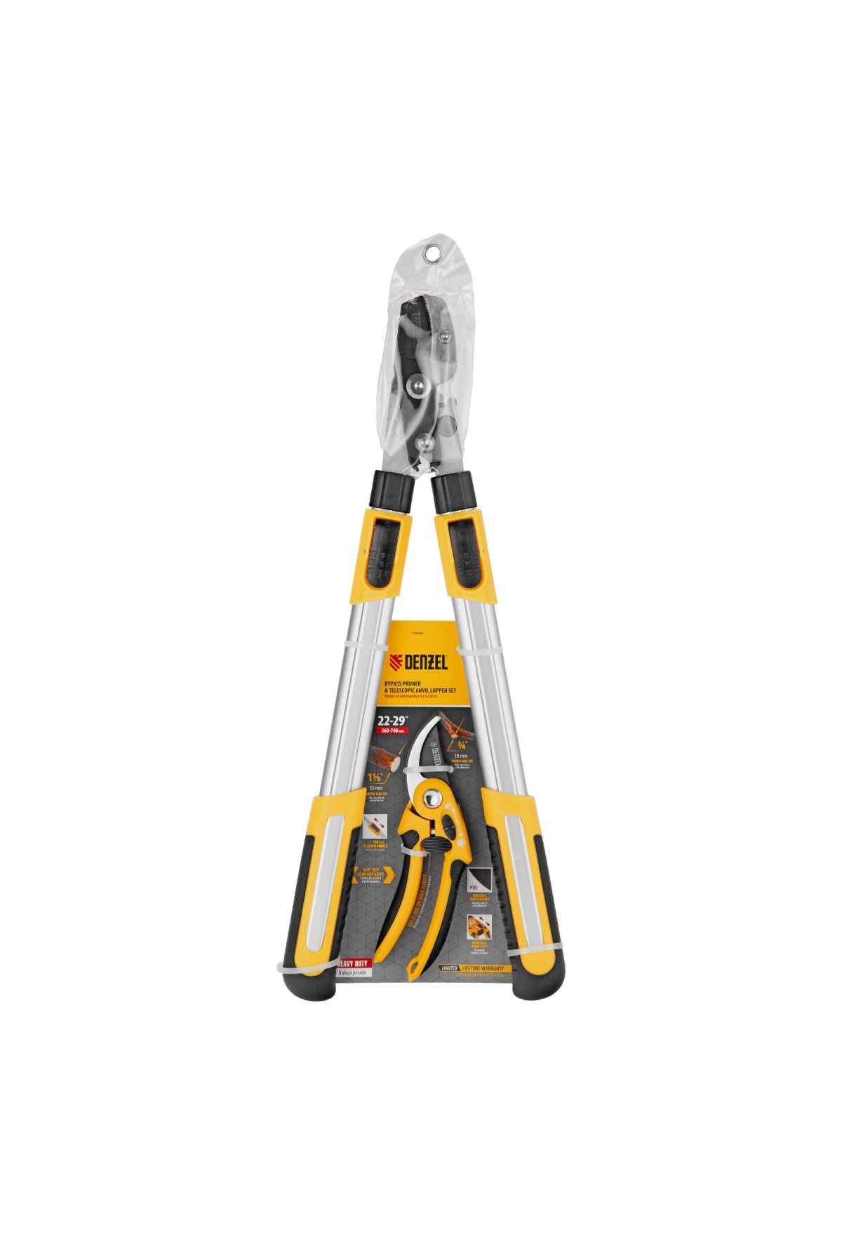 Набор Denzel 7760505 — это секатор прямого реза и сучкорез с телескопическими рукоятками длиной 22-29 дюймов. Секатор предназначен для обрезки живых веток диаметром до 19 мм, а сучкорез оптимален для срезания сухих и увядщих ветвей толщиной до 35 мм. Лезвия с тефлоновым покрытием легко срезают ветви, минимально повреждая растения. Набор будет полезен владельцам загородных участков.