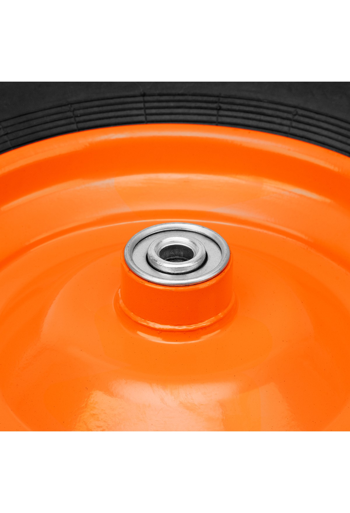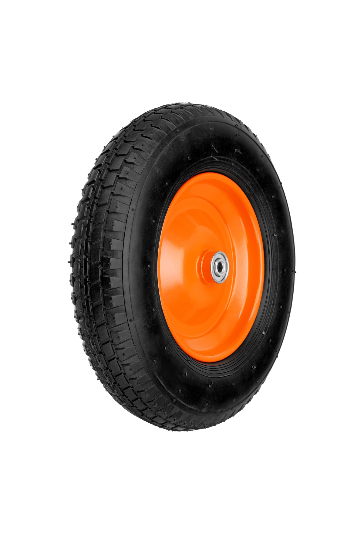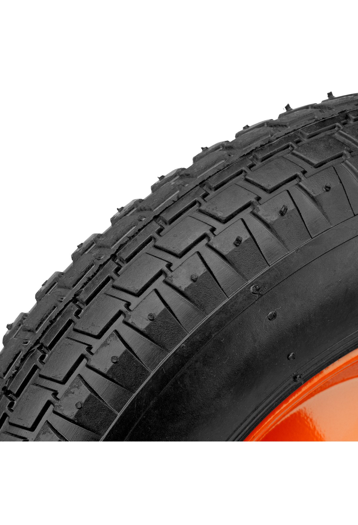 - Комфортная работа — пневматическое колесо эффективно поглощает вибрации даже при полной загрузке тачки.