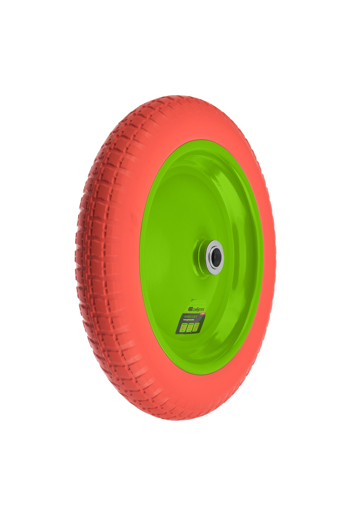 Полиуретановое колесо 3.00-8 Сибртех 689795 с длиной оси 80 мм и диаметром подшипника 20 мм — движущий элемент тачки 68936. Непрокалываемое колесо подходит для использования в самых жестких условиях. В отличие от пневматических колес не требует подкачки, обслуживания и легко отмывается от грязи.