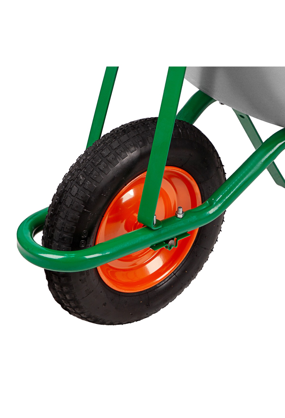 - Маневренность — колесо с двумя шариковыми подшипниками легко вращается и позволяет разворачивать тачку в узких местах.