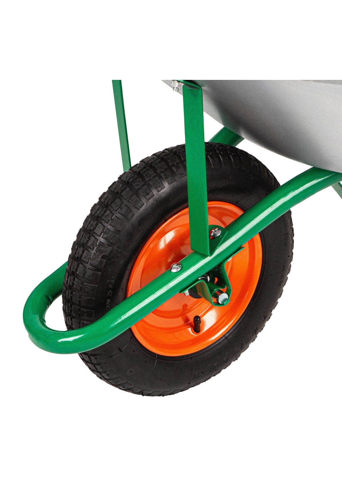 - Маневренность — колесо с двумя шариковыми подшипниками легко вращается и позволяет разворачивать тачку в узких местах.