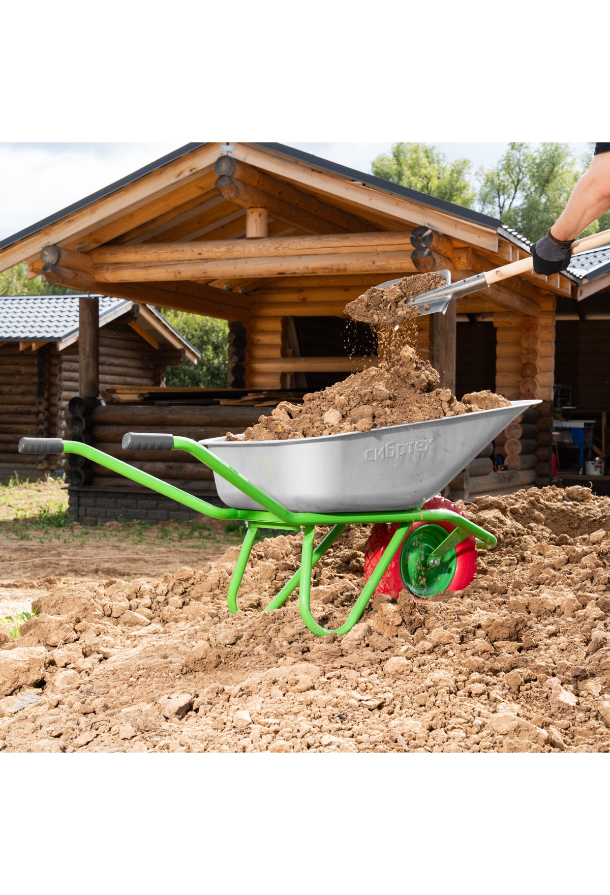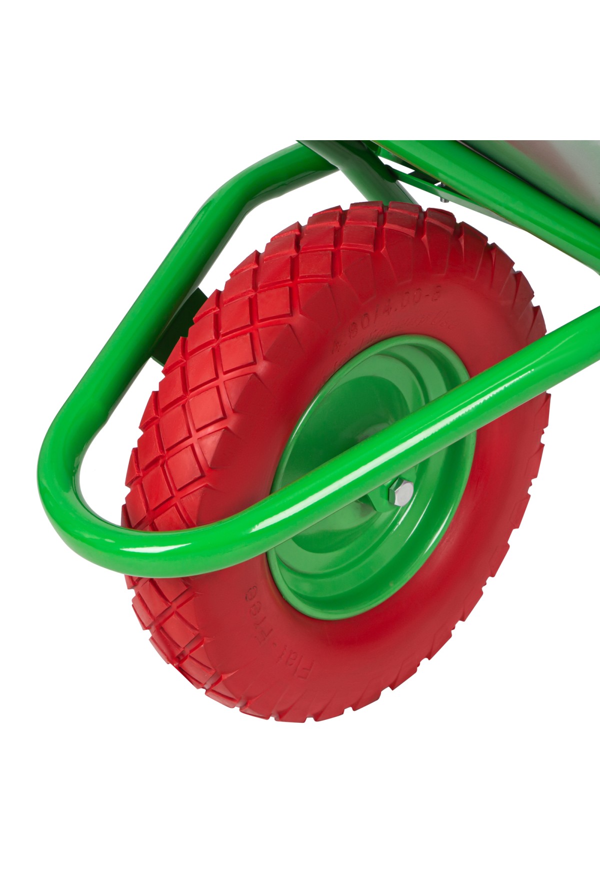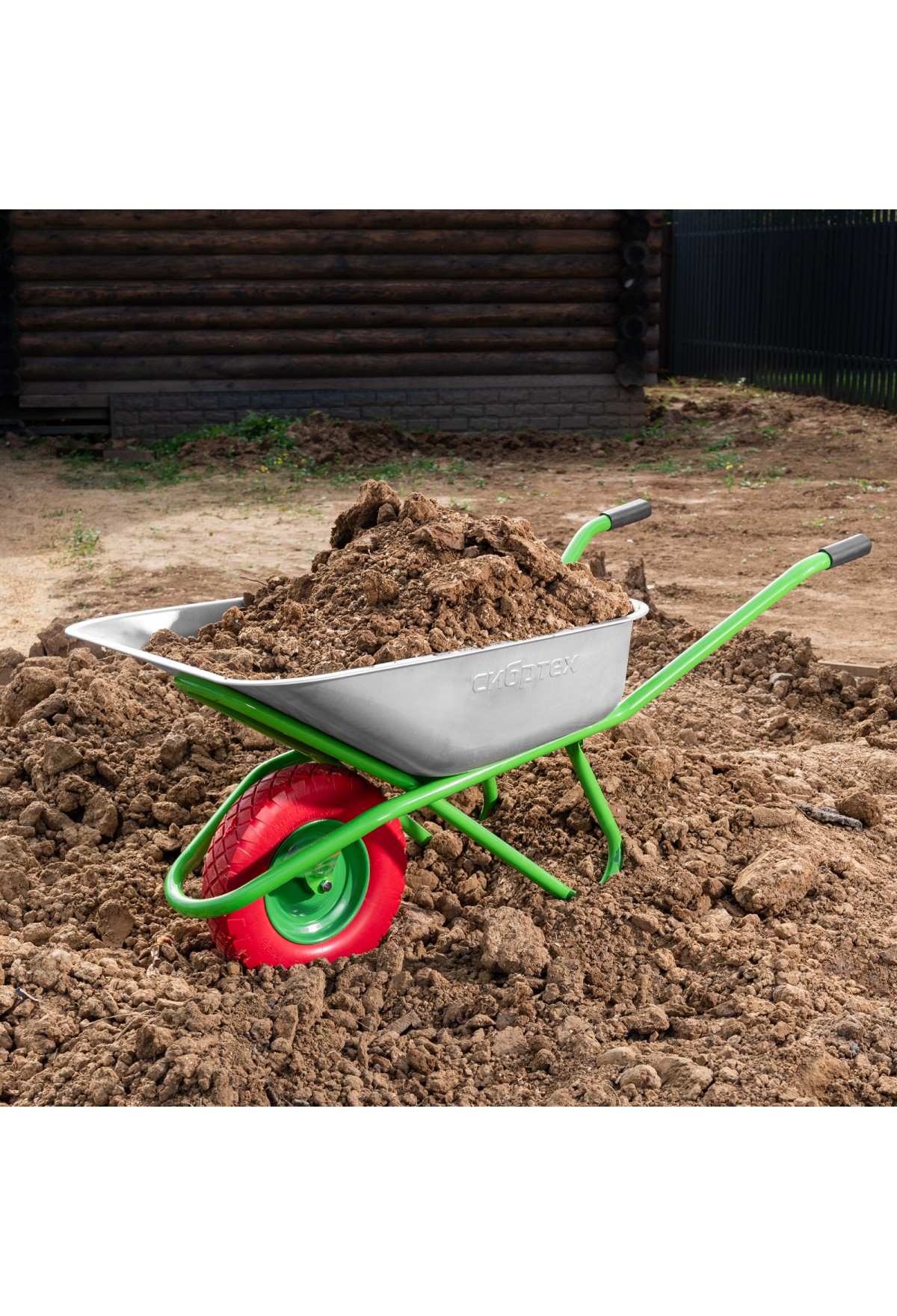 - Хорошая проходимость — колесо с 2 шариковыми подшипниками легко вращается, позволяя перемещать тачку по неровной поверхности.