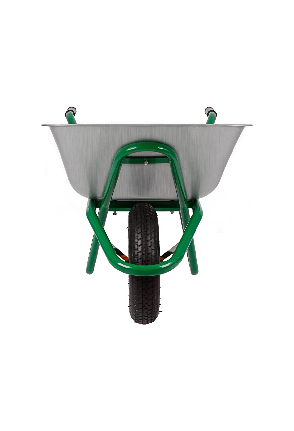 - Удобная фронтальная разгрузка — в конструкции тачки предусмотрен передний упор.