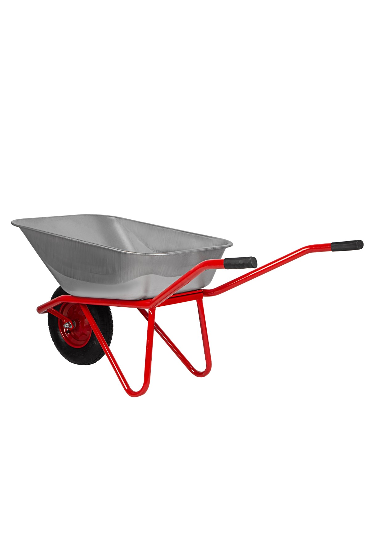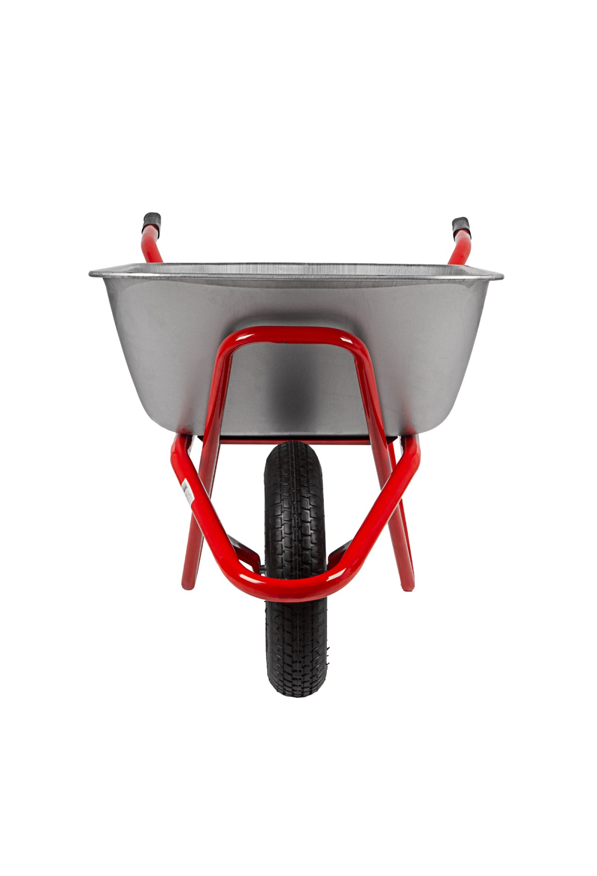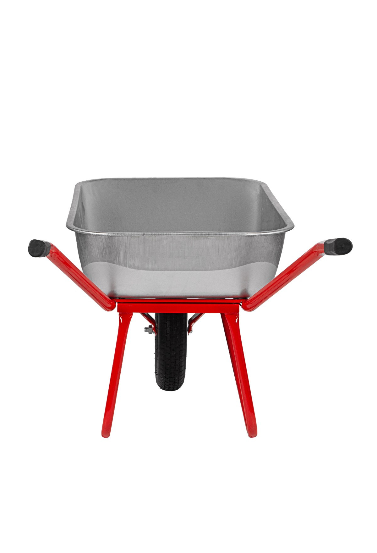 - Надежная конструкция — благодаря кузову с завальцованными бортами и дополнительной опоре рамы тачка выдерживает перевозку тяжелых грузов в интенсивном режиме.