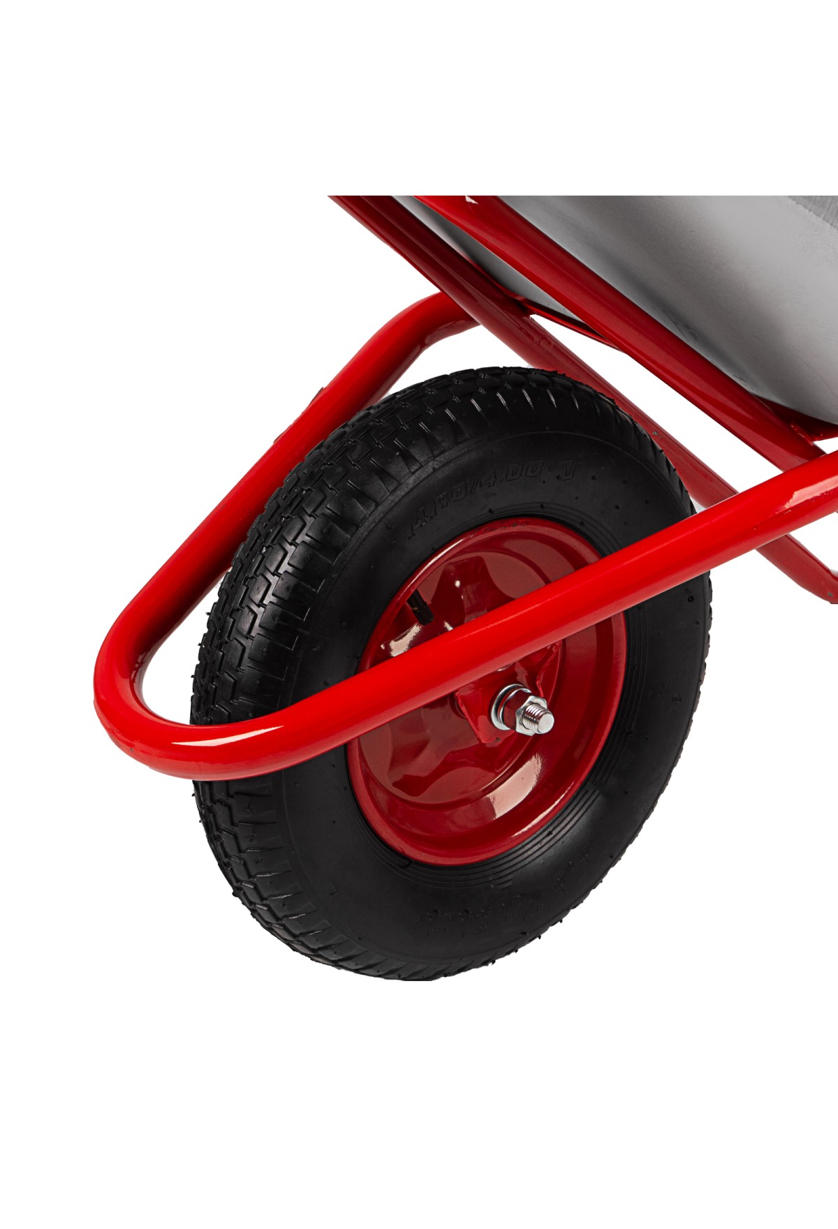 - Мягкий и плавный ход — пневмоколесо поглощает вибрации и упрощает перемещение тачки по неровной поверхности, а 2 шариковых подшипника облегчают его вращение.