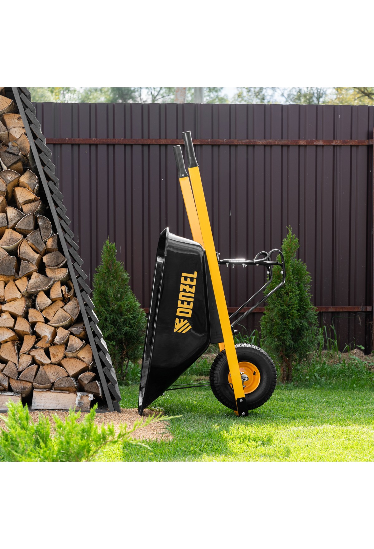 Тачка строительная, усиленная, объем 140 л, 230 кг, колесо 15х6.00-6 Denzel