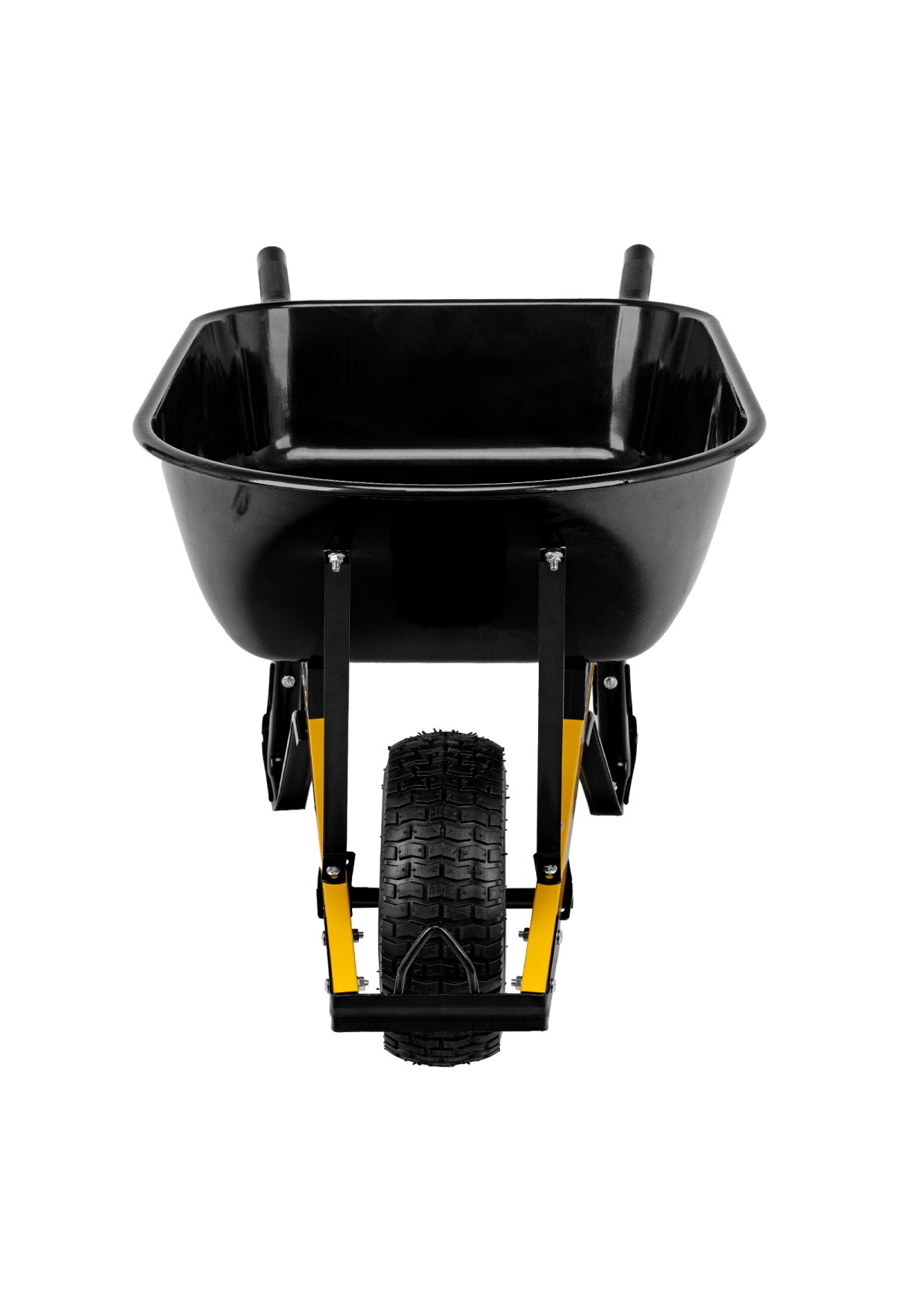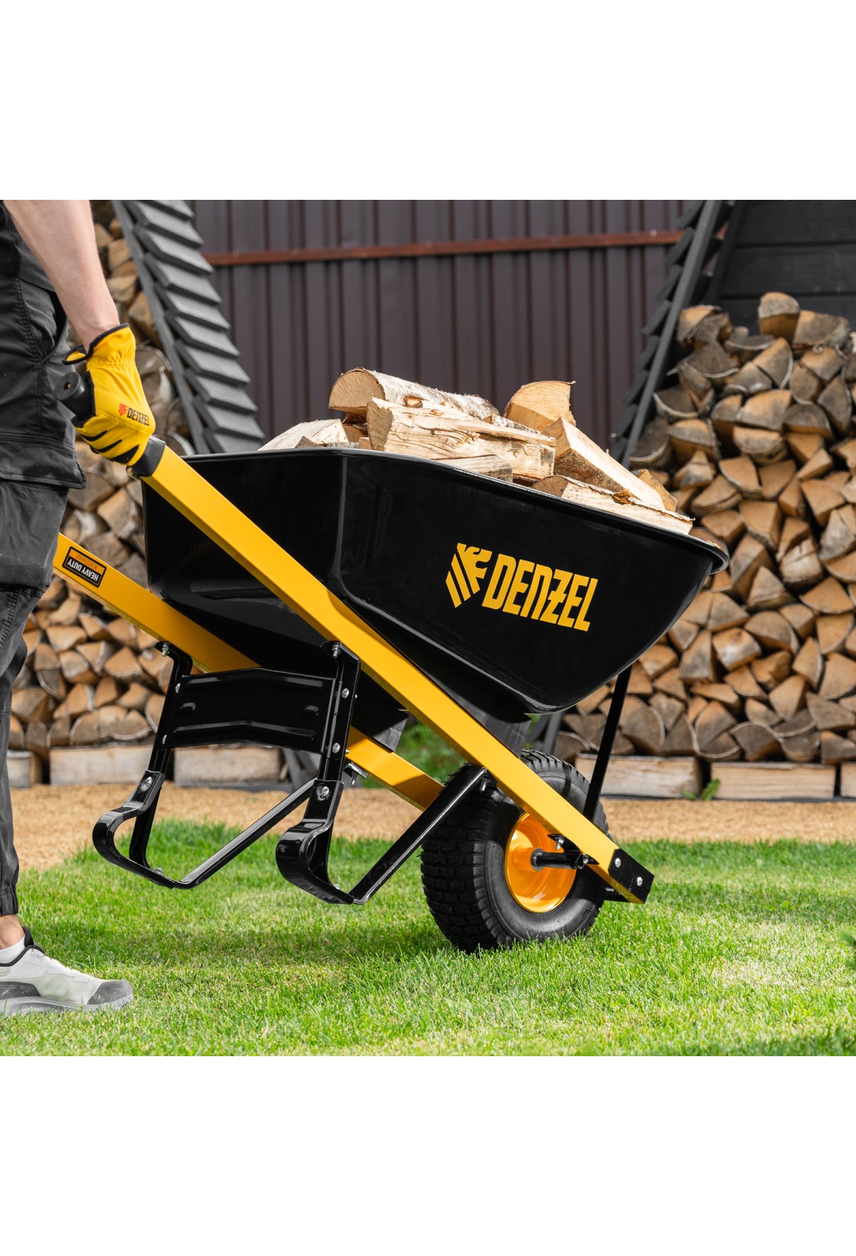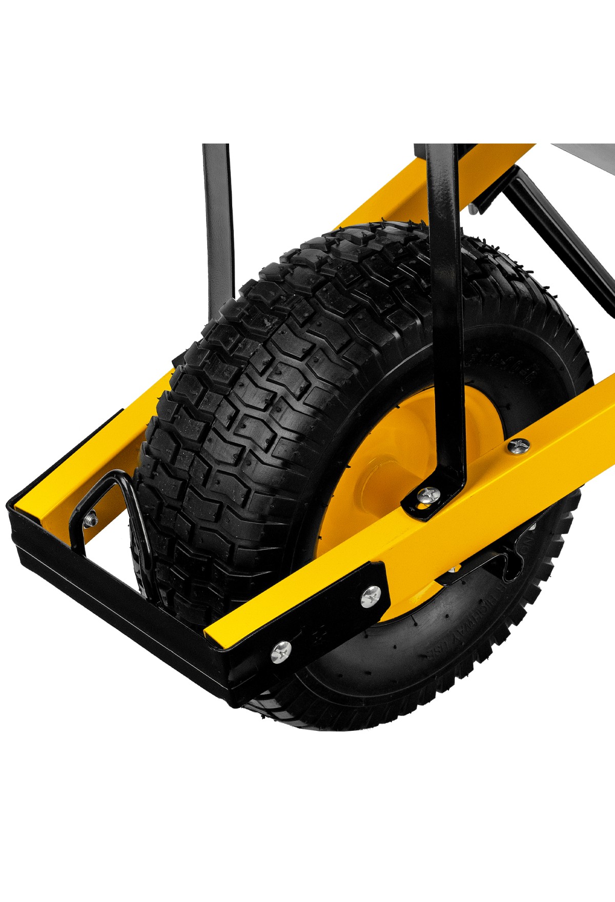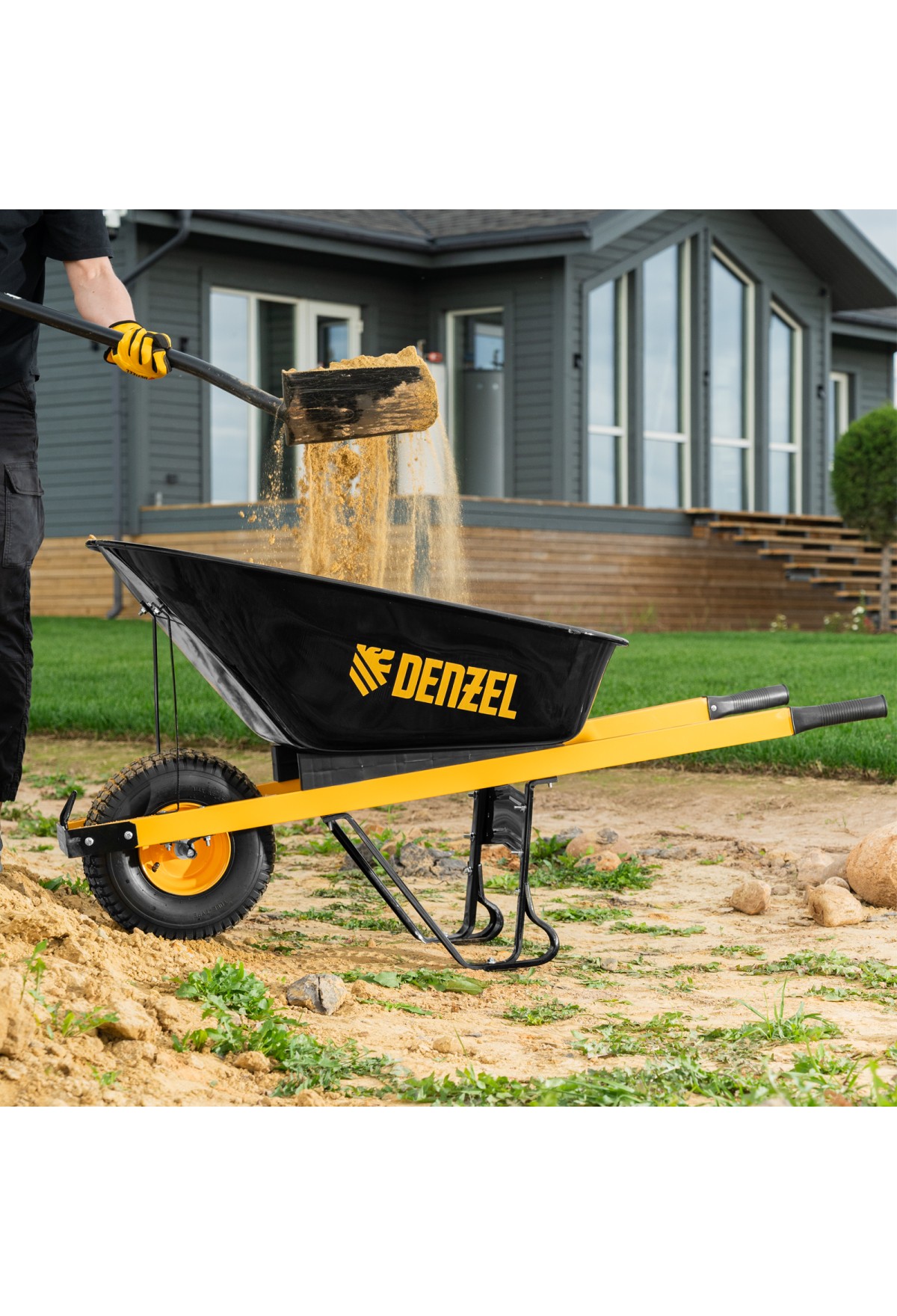 - Устойчивость — тачка не проваливается в грунт благодаря широкому пневмоколесу и подпятникам на ножках.