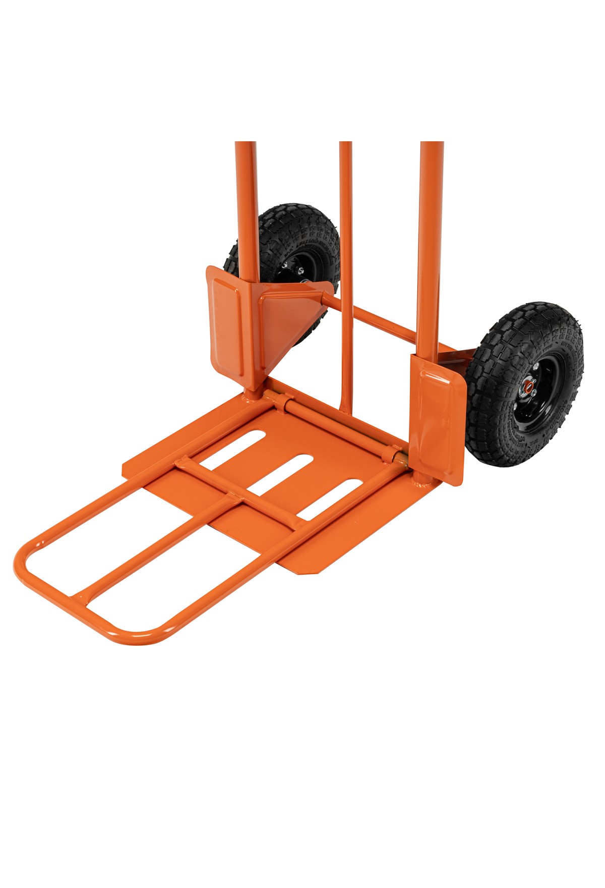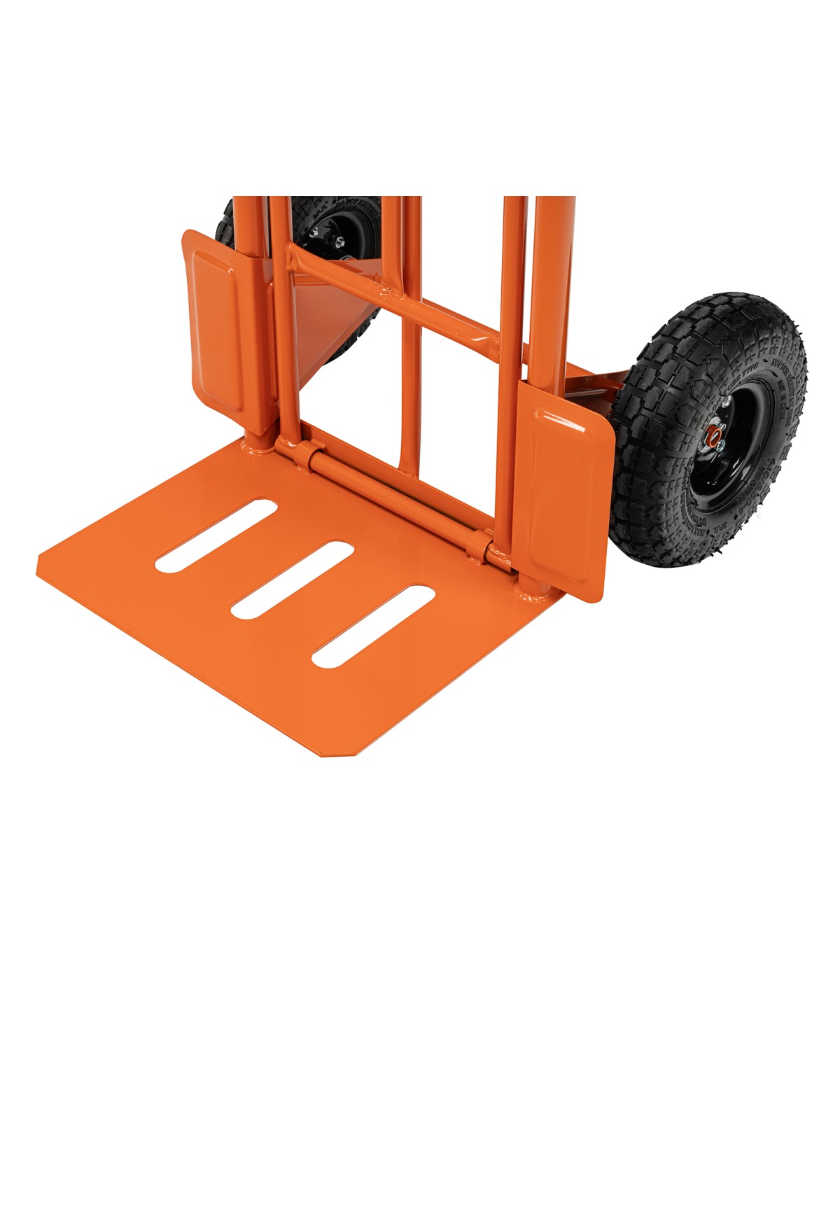 - Дополнительные возможности — откидная платформа позволяет разместить на тележке груз с увеличенными габаритами.