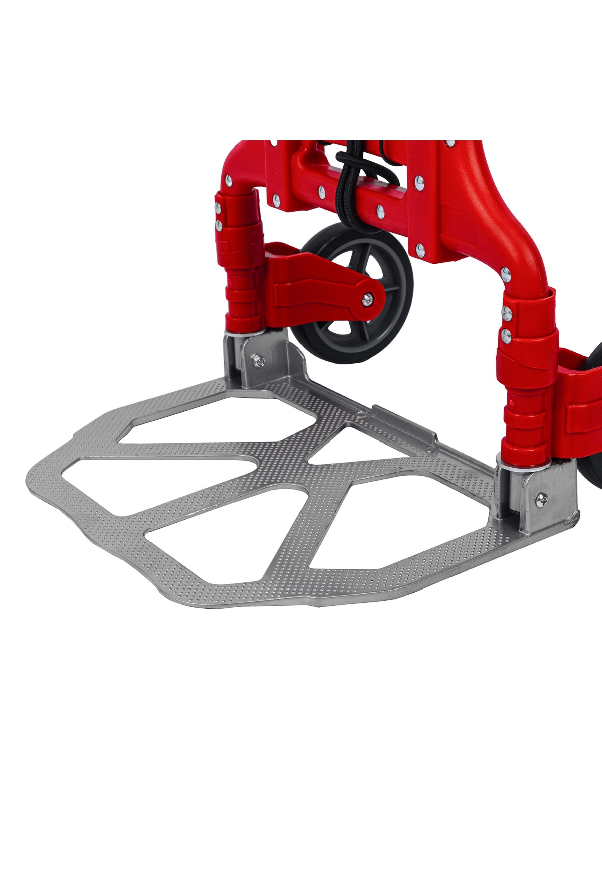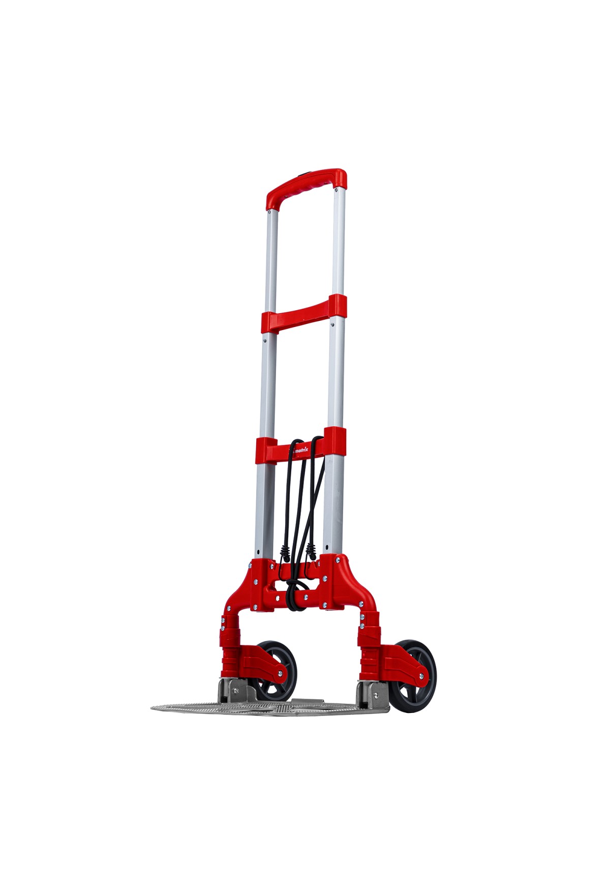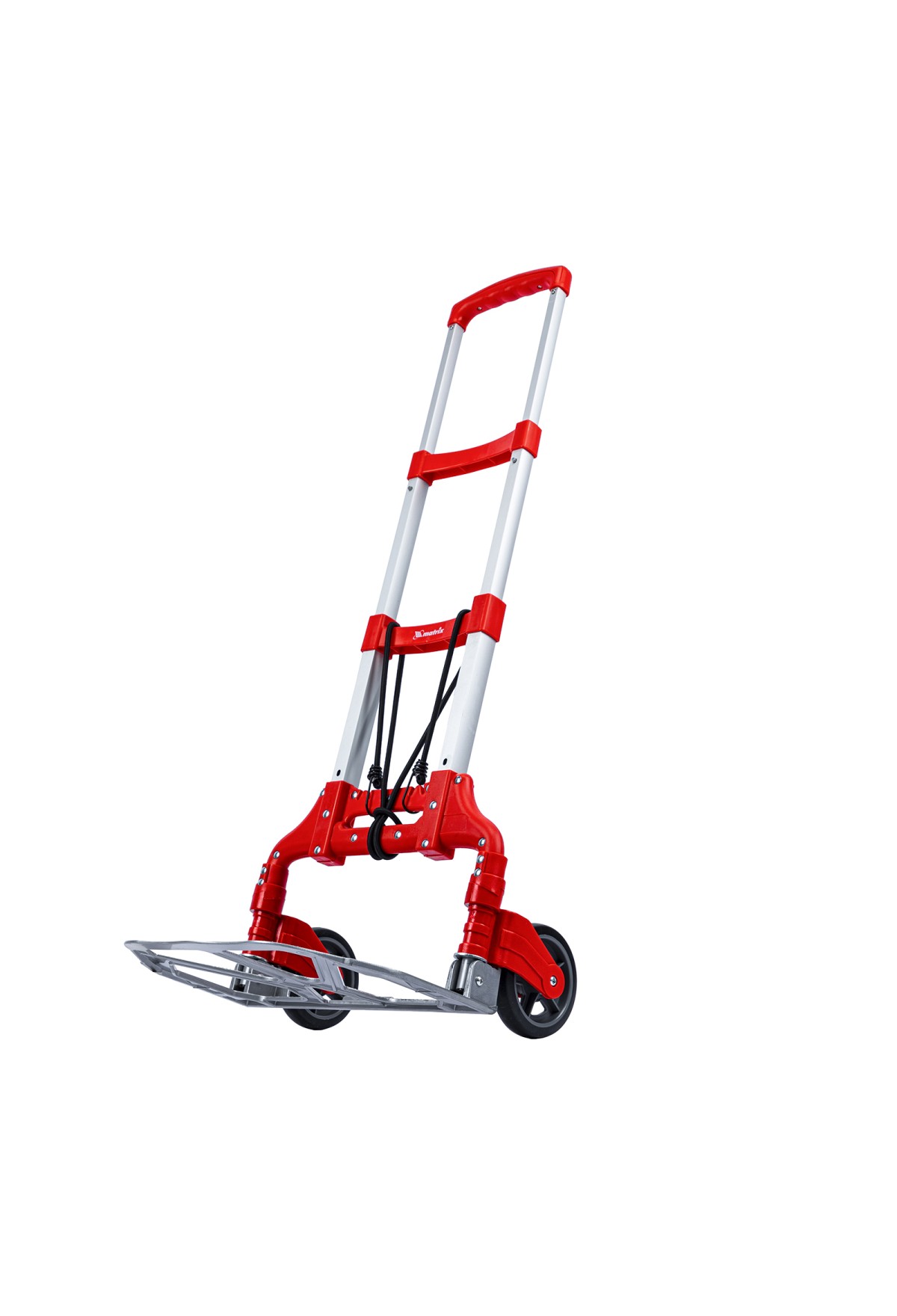 - Удобное хранение и транспортировка — платформа и колеса складываются, поэтому тележка не занимает много места.