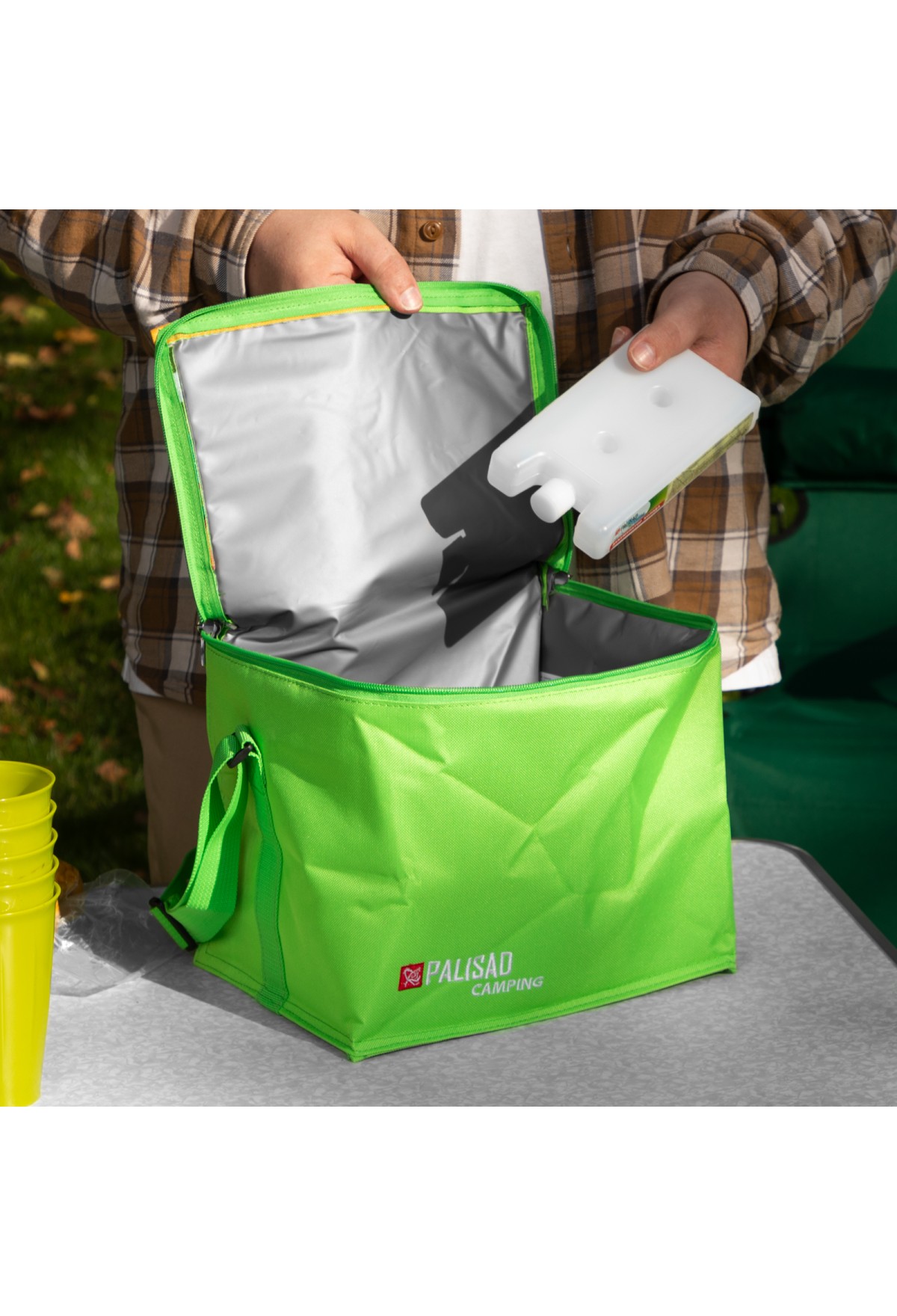 Сумка-холодильник Palisad Camping 69598 размером 28 х 20 х 24 см сохранит продукты и напитки прохладными в жару. Для этого в комплекте имеется пакет с охлаждающим гелем. Дополнительно можно приобрести аккумуляторы холода Palisad 69601. Теплоизоляционный слой из высококачественных материалов PEVA, EPE эффективно поддерживает температуру внутри сумки. Изделие пригодится для перевозки продуктов и напитков, также его можно взять с собой на пикник.