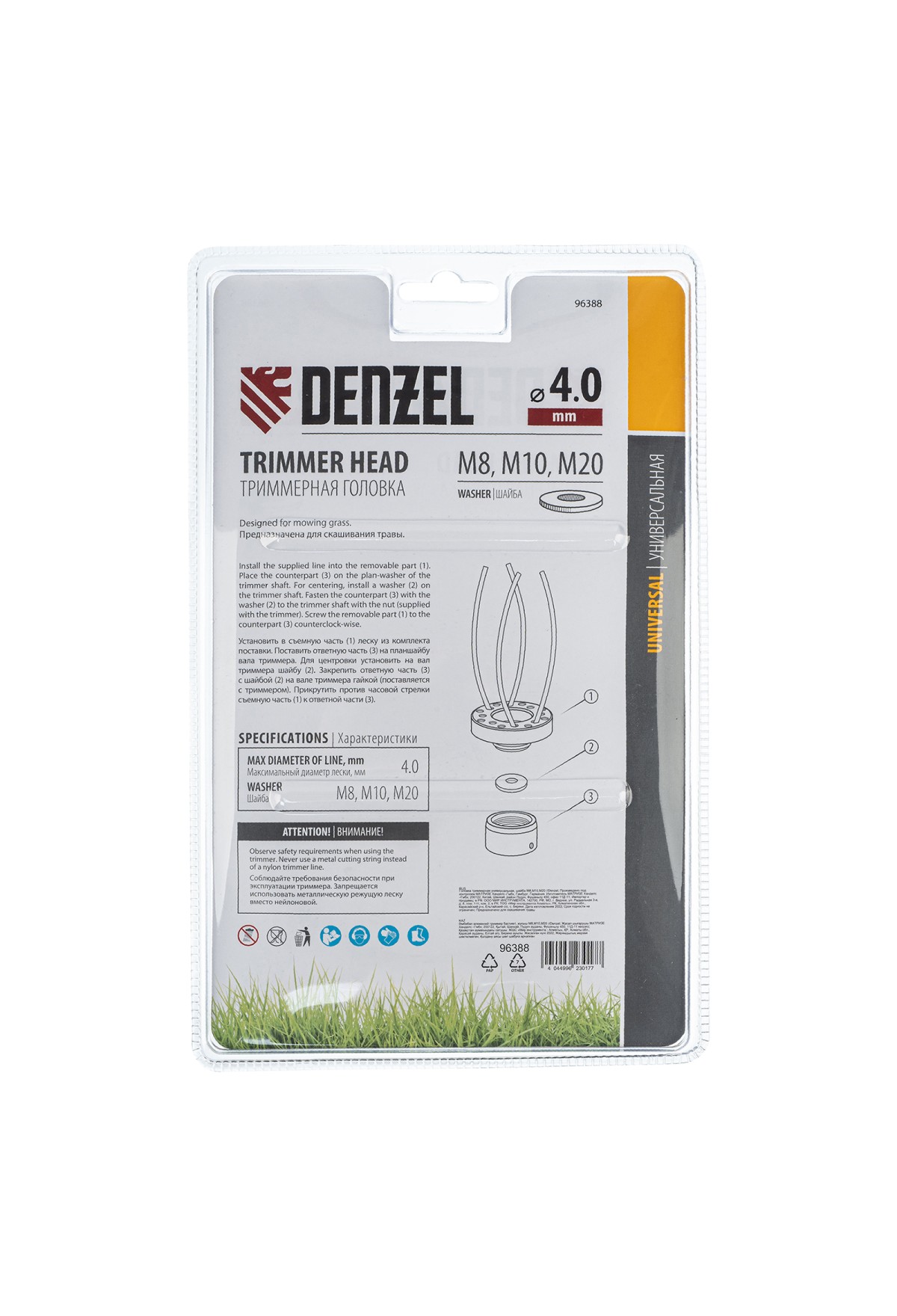 Универсальная триммерная головка Denzel 96388, в комплекте с шайбами M8, M10, M20, предназначена для установки на электро- и бензотриммеры. Позволяет ухаживать за газоном и эффективно бороться с сорняками. Подходит для работы на местности со сложным рельефом. Используется для ухода за растительностью на дачном участке.