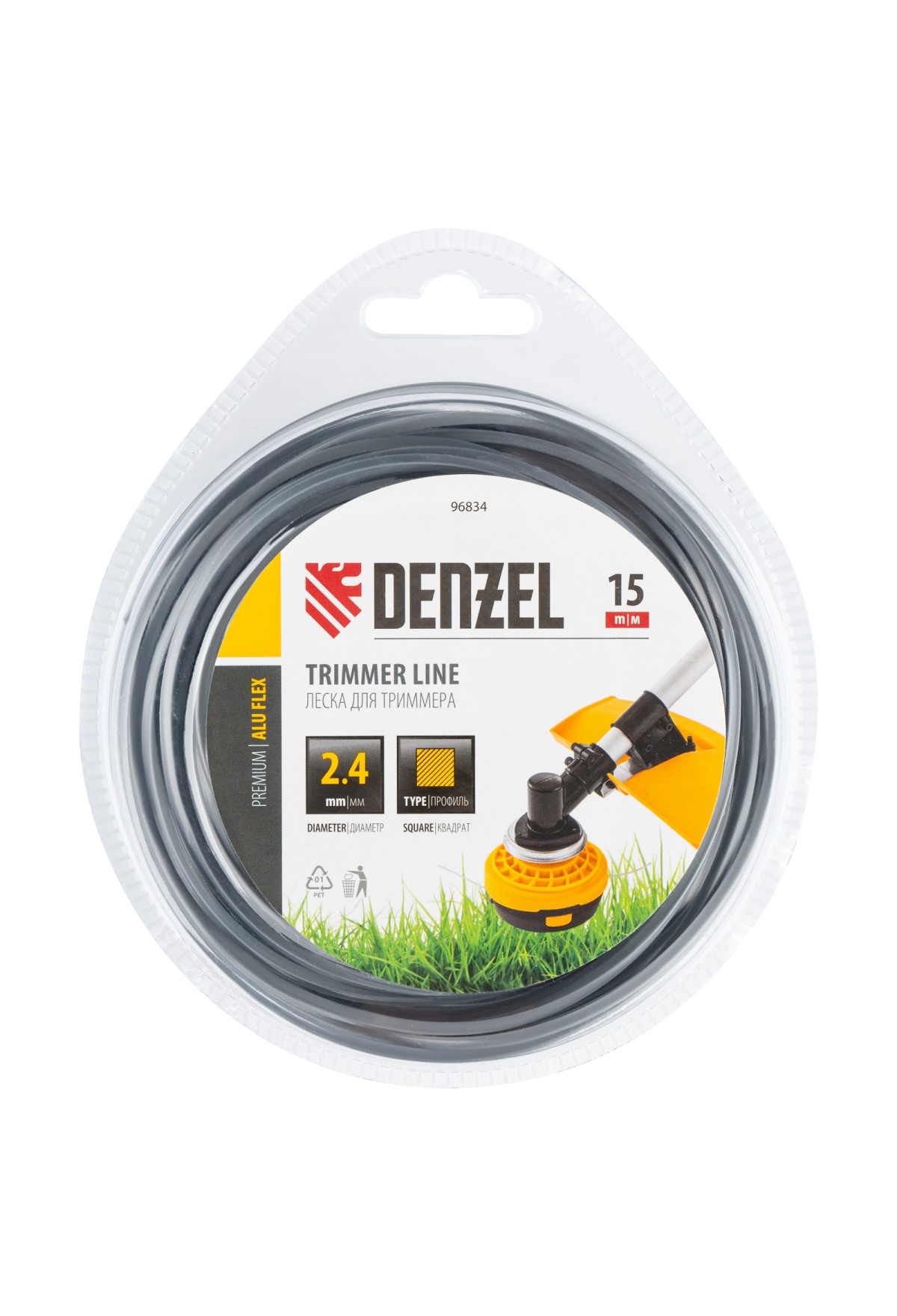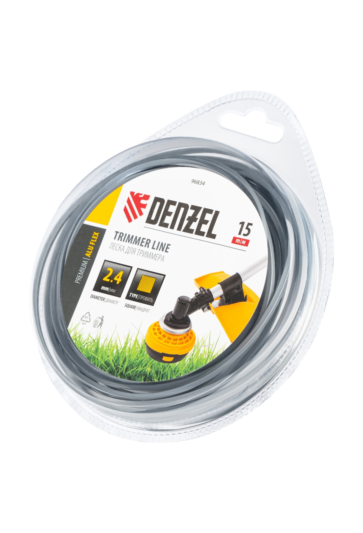 Армированная алюминием леска для триммера Denzel ALUFLEX 96833 квадратного сечения, толщиной 2,4 мм и длиной 15 мм, в блистере, предназначена для скашивания густой травы и растений с толстыми стеблями. Отличается повышенной износостойкостью. Заправляется в катушку электрического триммера или бензотриммера с объемом двигателя 25-52 см3. Леска будет полезна владельцам дачных участков.