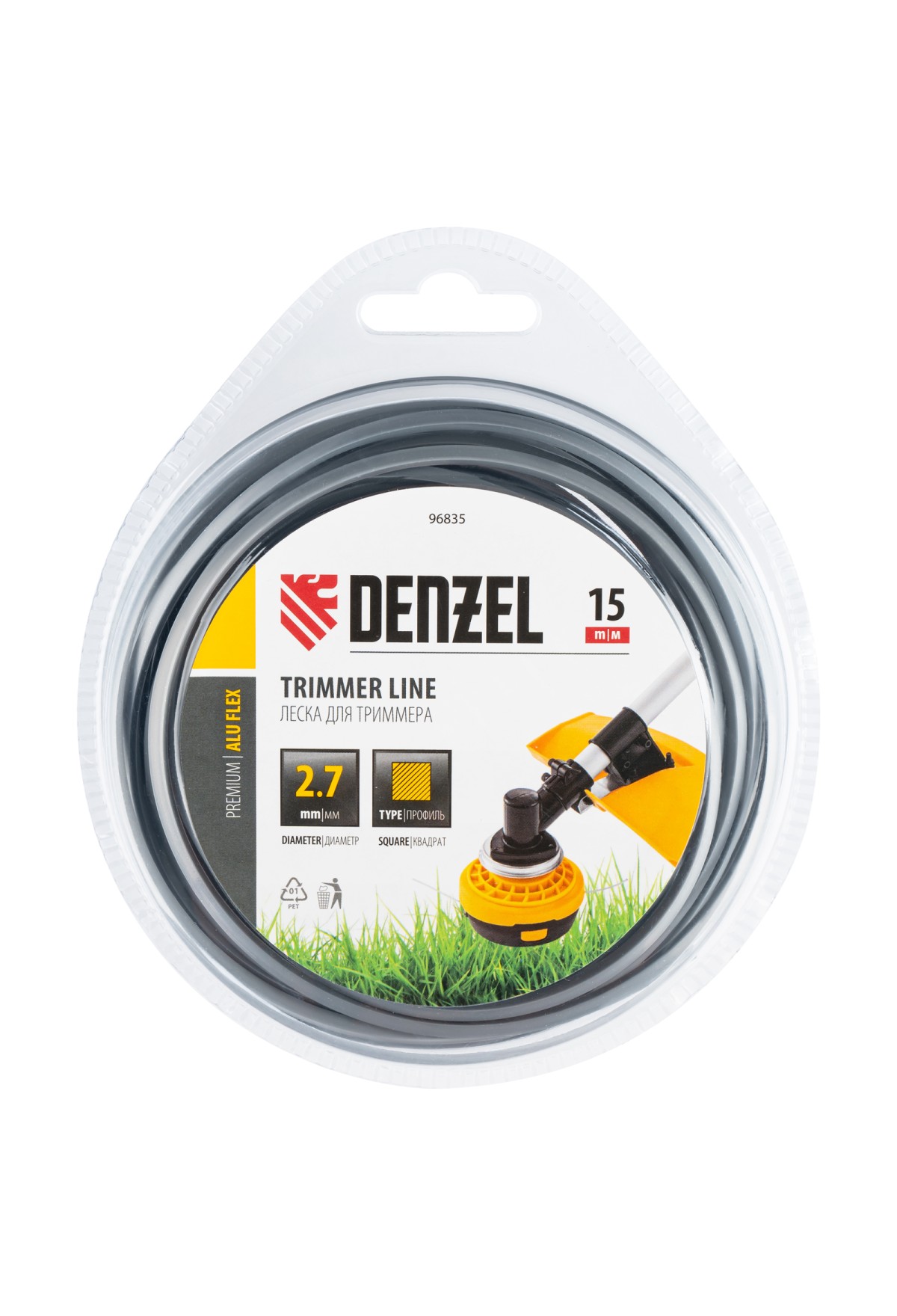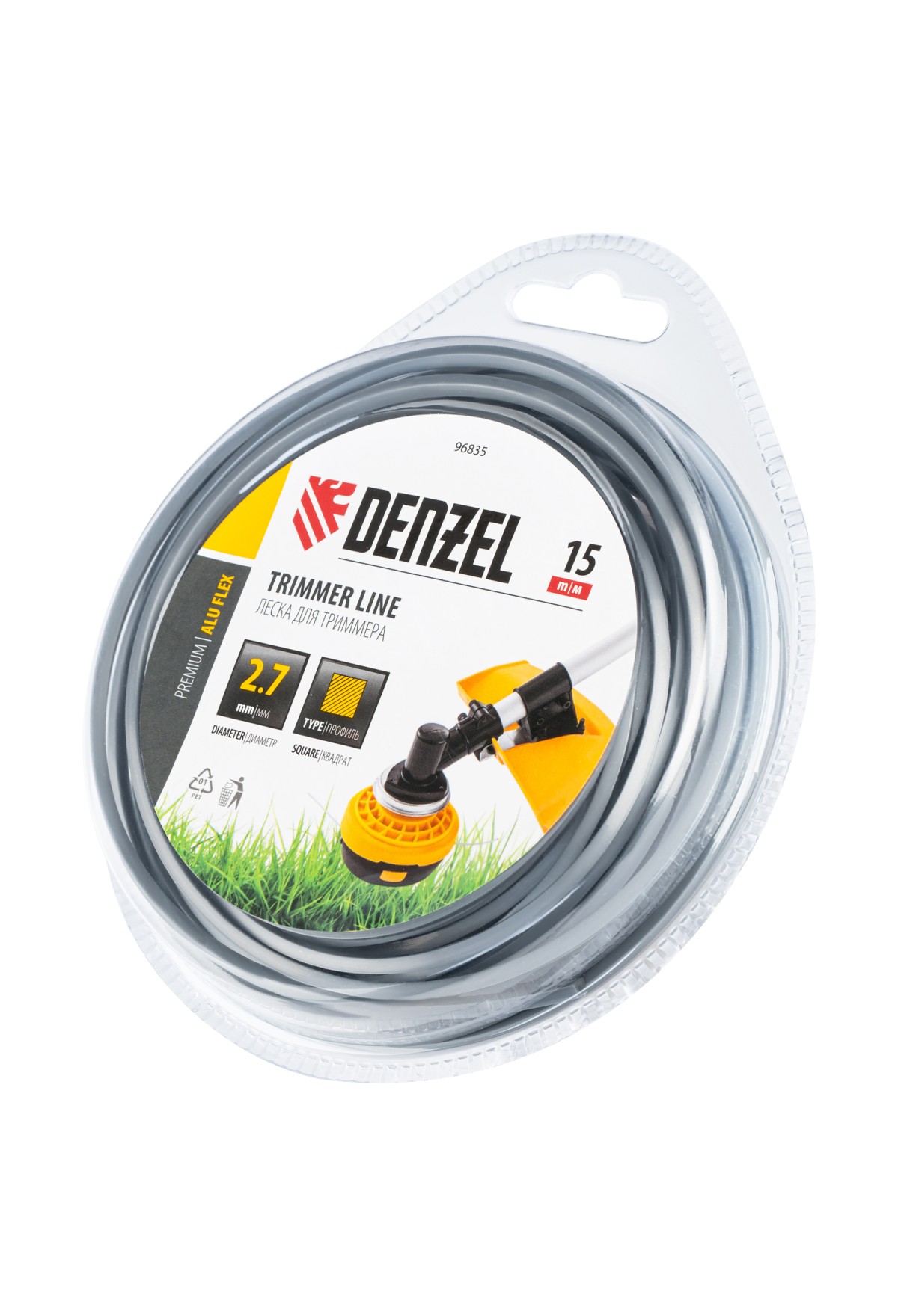 Леска для триммера армированная алюминием квадратная, 2,7мм х 15м, блистер ALUFLEX// Denzel