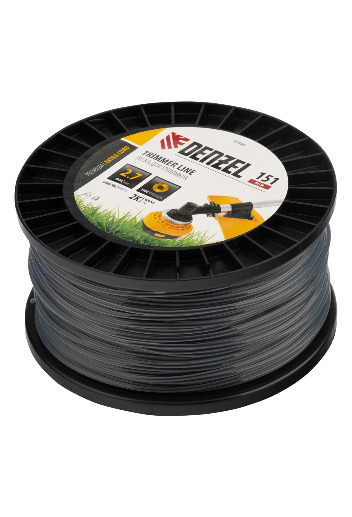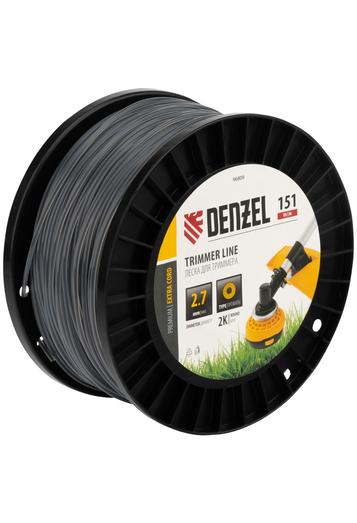 Леска для триммера двухкомпонентная круглая, 2,7мм х 151м, на DIN катушке EXTRA CORD// Denzel