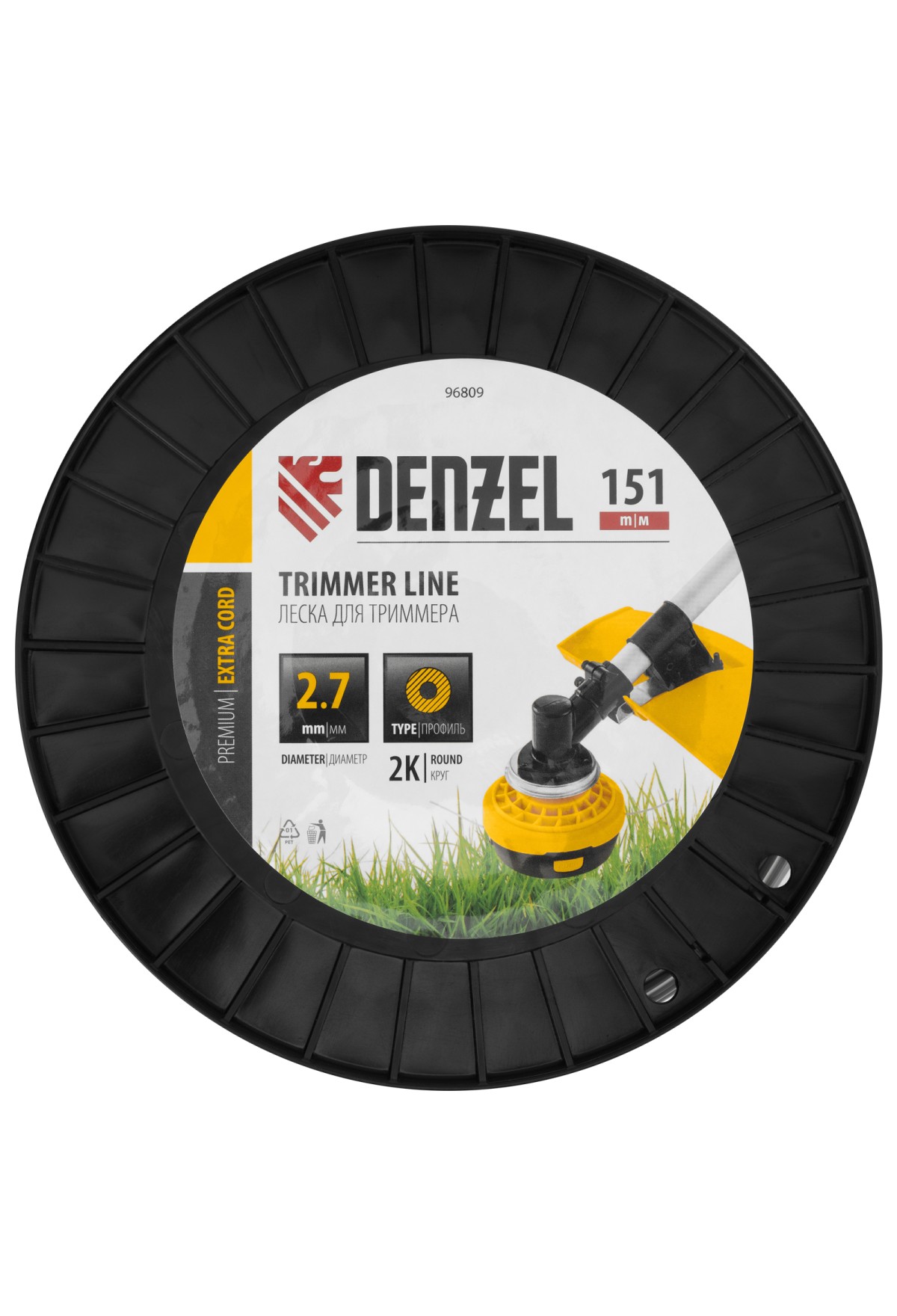 Технические характеристики Леска для триммера двухкомпонентная круглая, 2,7мм х 151м, на DIN катушке EXTRA CORD// Denzel