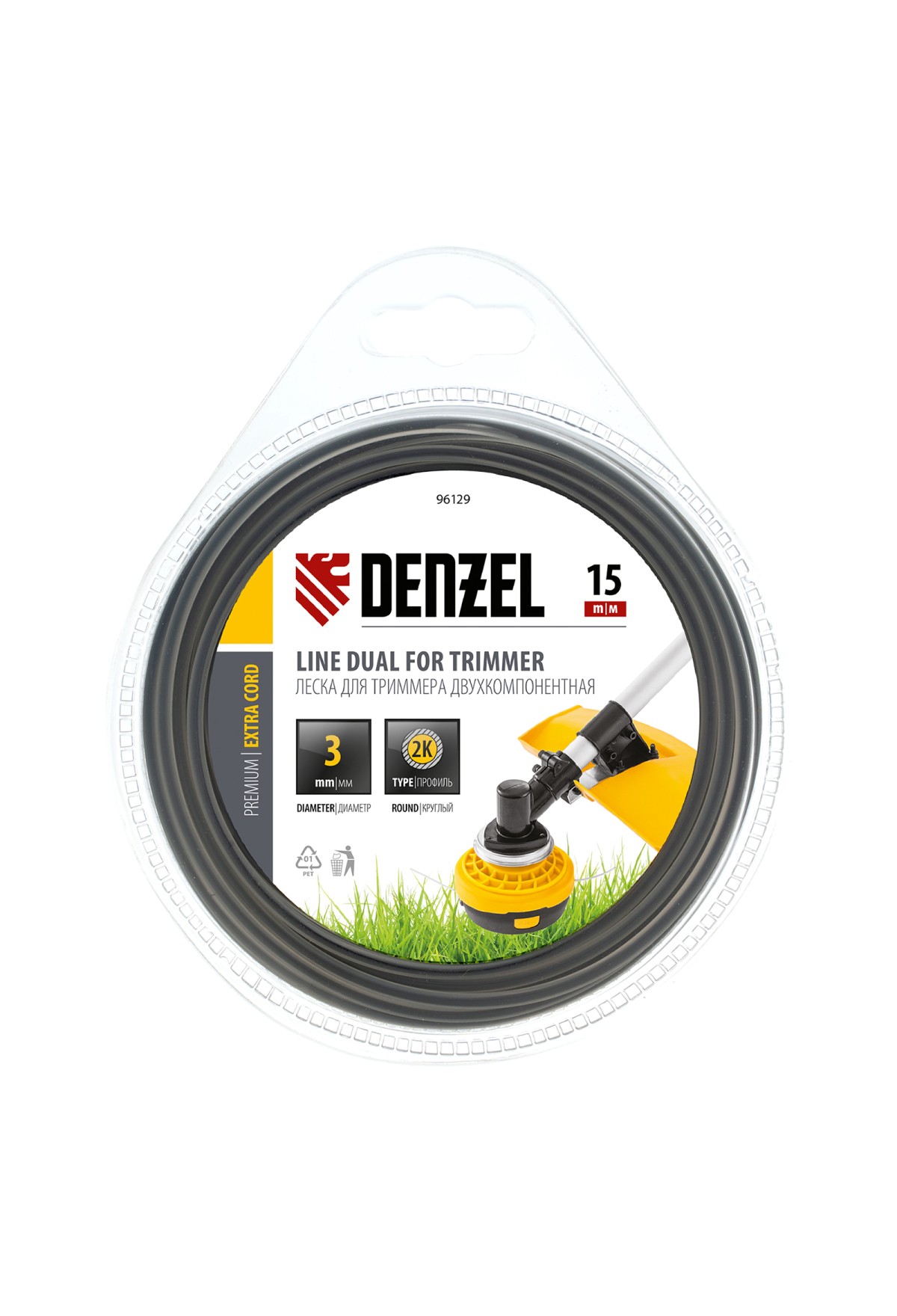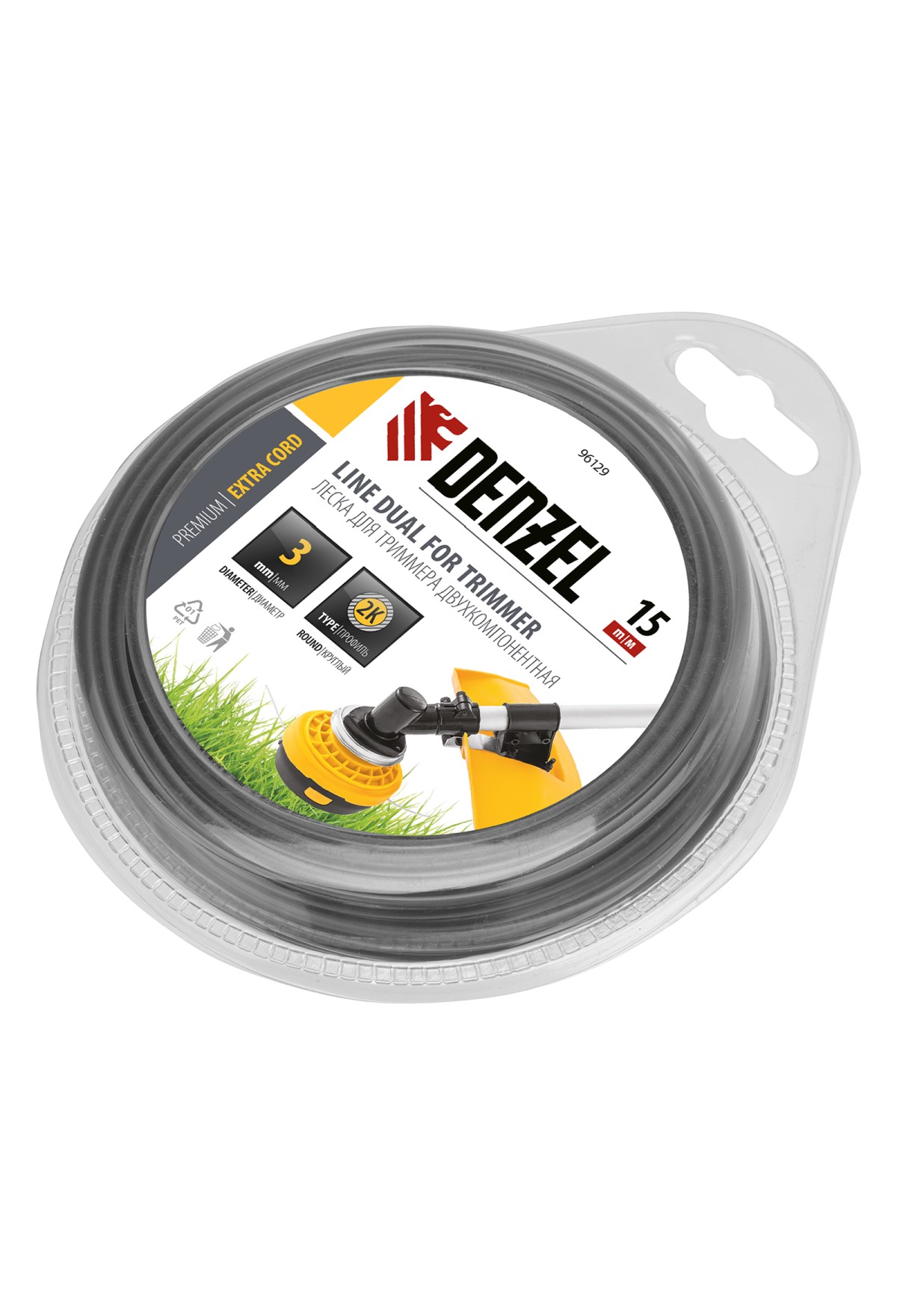 Двухкомпонентная леска Denzel Extra cord 96129 круглого сечения, размером 3,0 мм х 15 м, используется с высокопроизводительными бензотриммерами мощностью от 1,5 кВт. Оптимальна для профессионального применения в городских парках, скверах, на каменистом грунте, вблизи железных дорог и на других участках. Леска состоит из двух частей — высокопрочного сердечника и пластичной внешней оболочки. Такое решение повышает рабочий ресурс режущего элемента до 40% по сравнению с традиционными лесками.