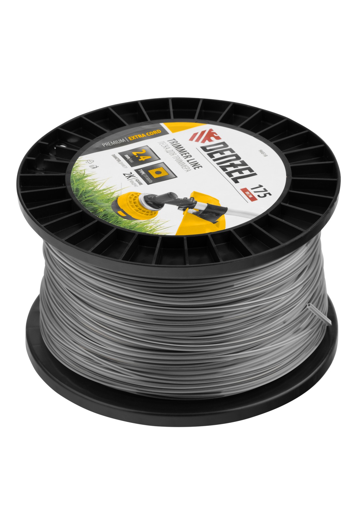 Двухкомпонентная леска для триммера Denzel EXTRA CORD 96818 размером 2,4 мм х 175 м, с сечением «квадрат», на DIN-катушке, используется для скашивания густых зарослей травы и сорных растений на дачном участке и придомовой территории. Заправляется в катушку электротриммеров и бензокос с объемом двигателя 25-52 см3. Благодаря острым граням леска успешно справляется с толстыми, жесткими стеблями, позволяя быстро обработать участок большой площади.