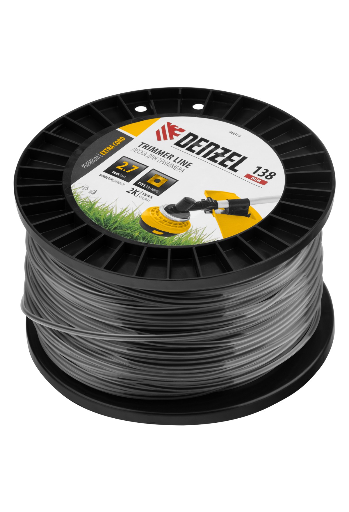 Двухкомпонентная леска для триммера Denzel EXTRA CORD 96819 размером 2,7 мм х 138 м, с сечением «квадрат», на DIN-катушке, используется для скашивания густых зарослей травы и сорных растений на дачном участке и придомовой территории. Заправляется в катушку бензокос с объемом двигателя 25-52 см3. Благодаря острым граням леска успешно справляется с толстыми, жесткими стеблями, позволяя быстро обработать участок большой площади.