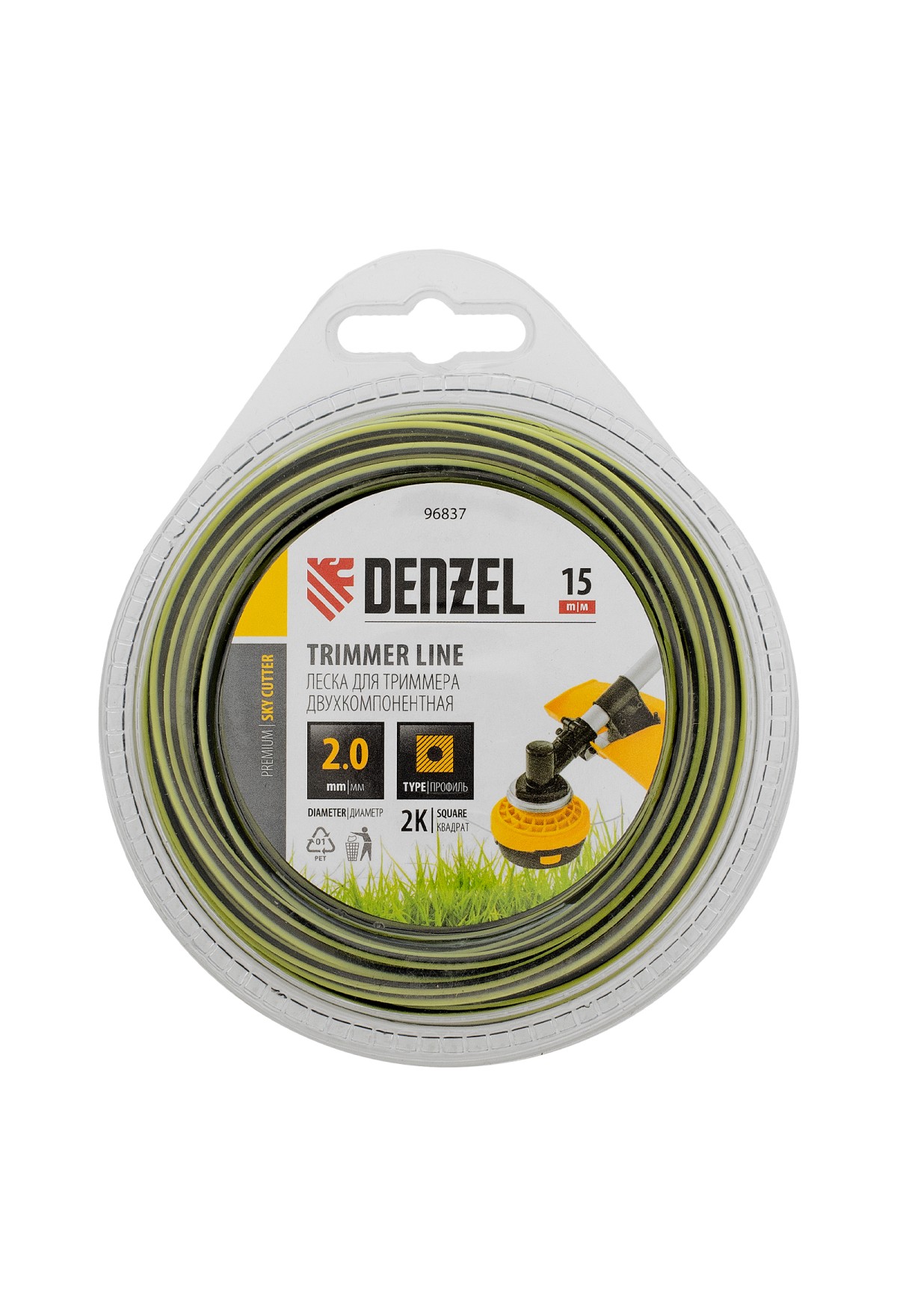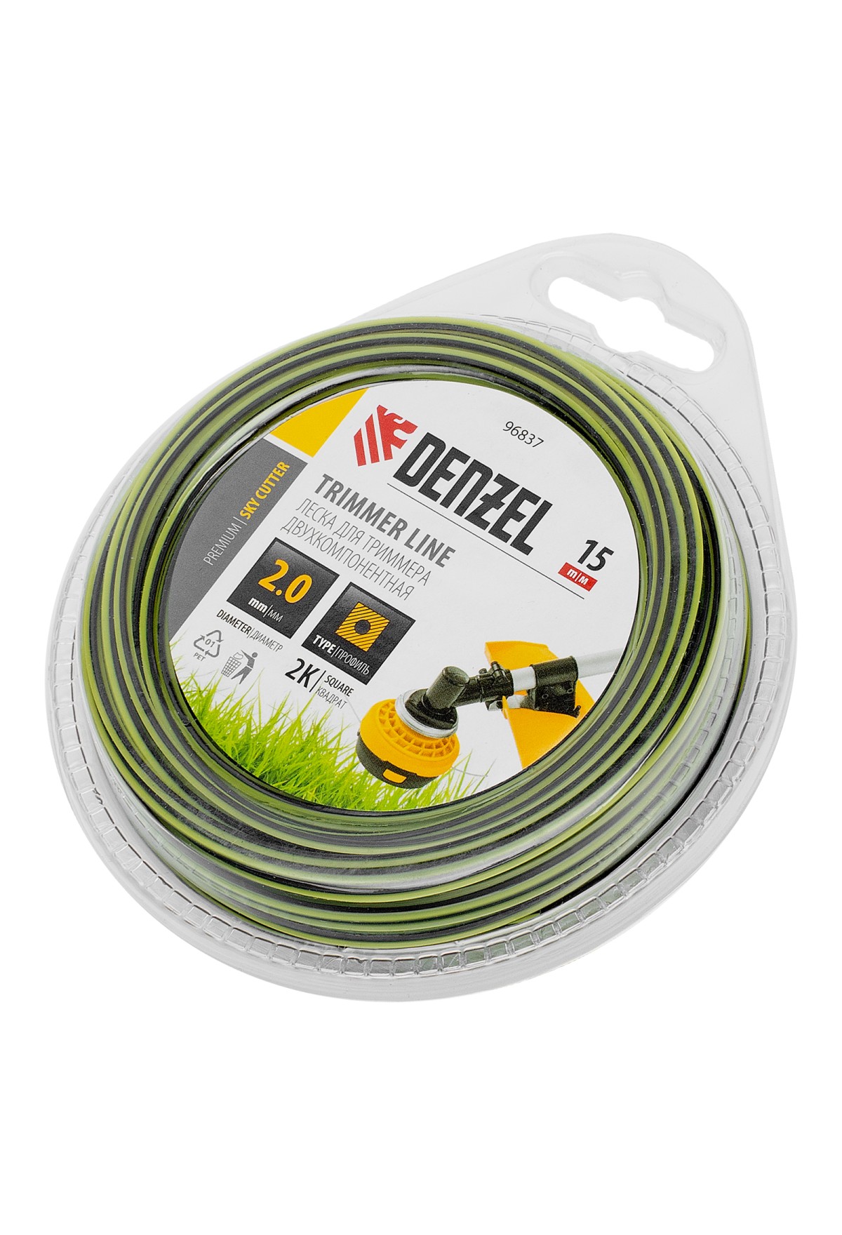 Двухкомпонентная квадратная леска для триммера Denzel SkyCutter 96837 размером 2,0 мм х 15 м, в блистере, используется для скашивания густой газонной травы и борьбы с сорняками. Успешно справляется даже с жесткими и толстыми стеблями, например, с борщевиком. Совместима с электрическими триммерами, также может устанавливаться на бензокосы с объемом двигателя 25-52 см3. Леска оптимальна для использования на дачном участке.