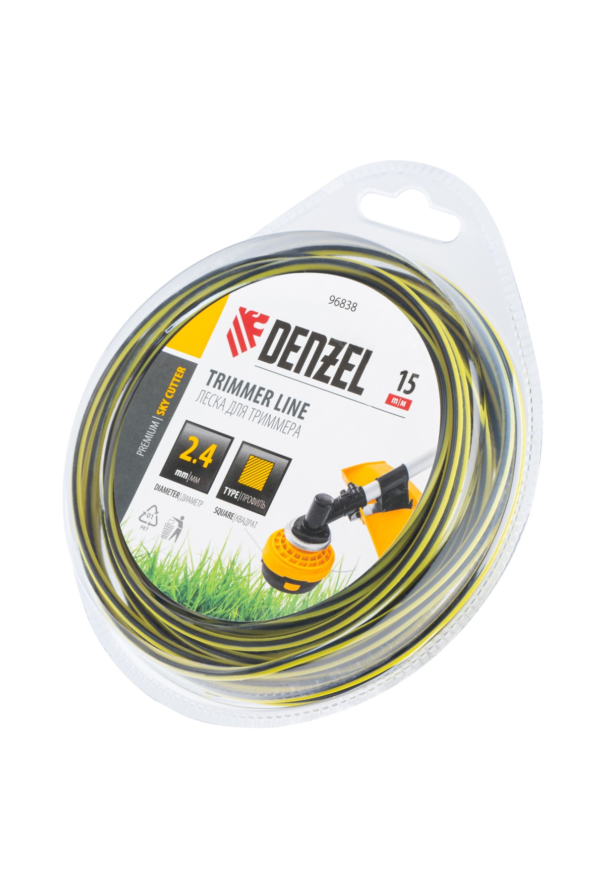 Двухкомпонентная квадратная леска для триммера Denzel SkyCutter 96838 размером 2,4 мм х 15 м, в блистере, используется для скашивания густой газонной травы и борьбы с сорняками. Успешно справляется даже с жесткими и толстыми стеблями, например, с борщевиком. Совместима с электрическими триммерами, также может устанавливаться на бензокосы с объемом двигателя 25-52 см3. Леска оптимальна для использования на дачном участке.