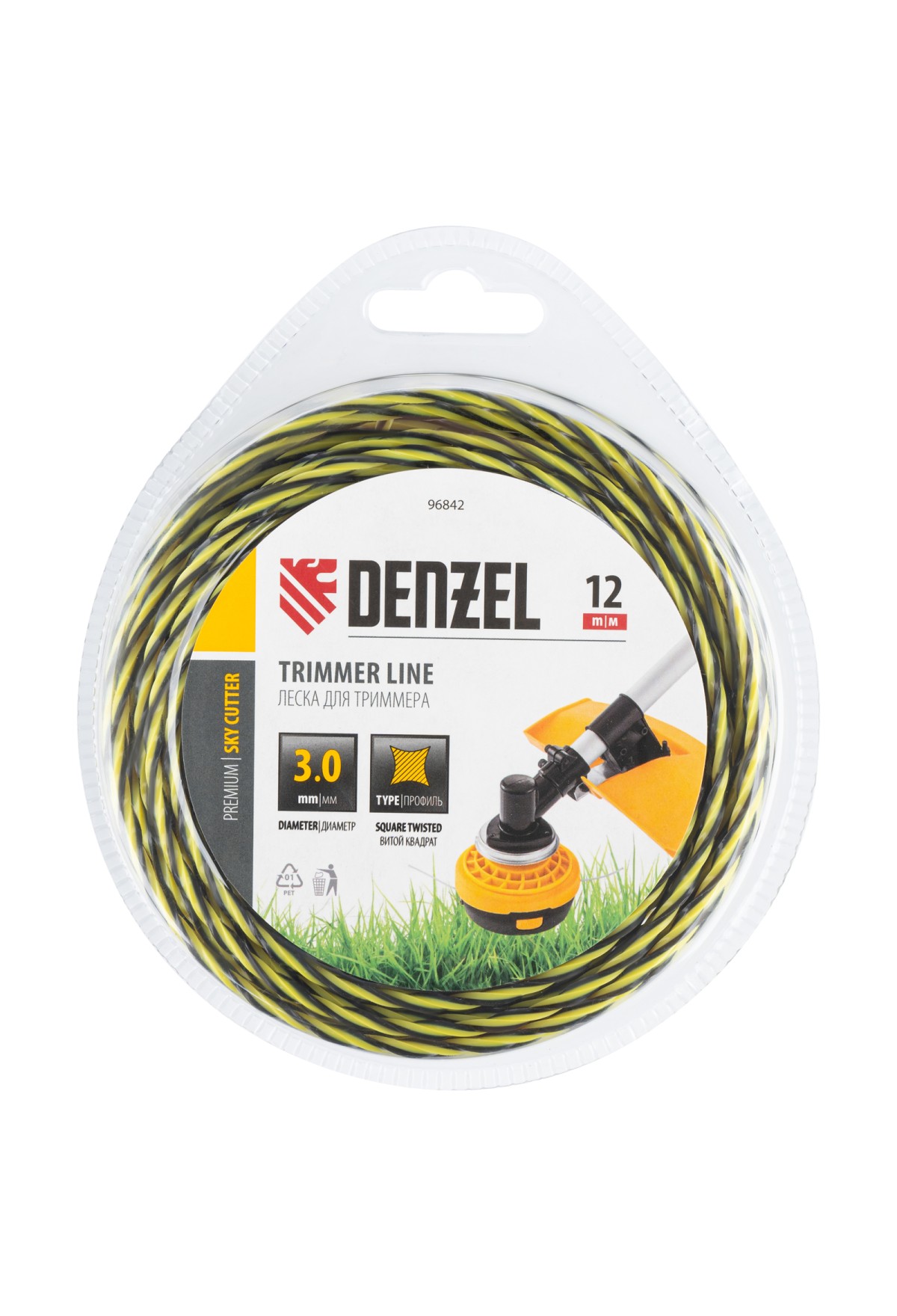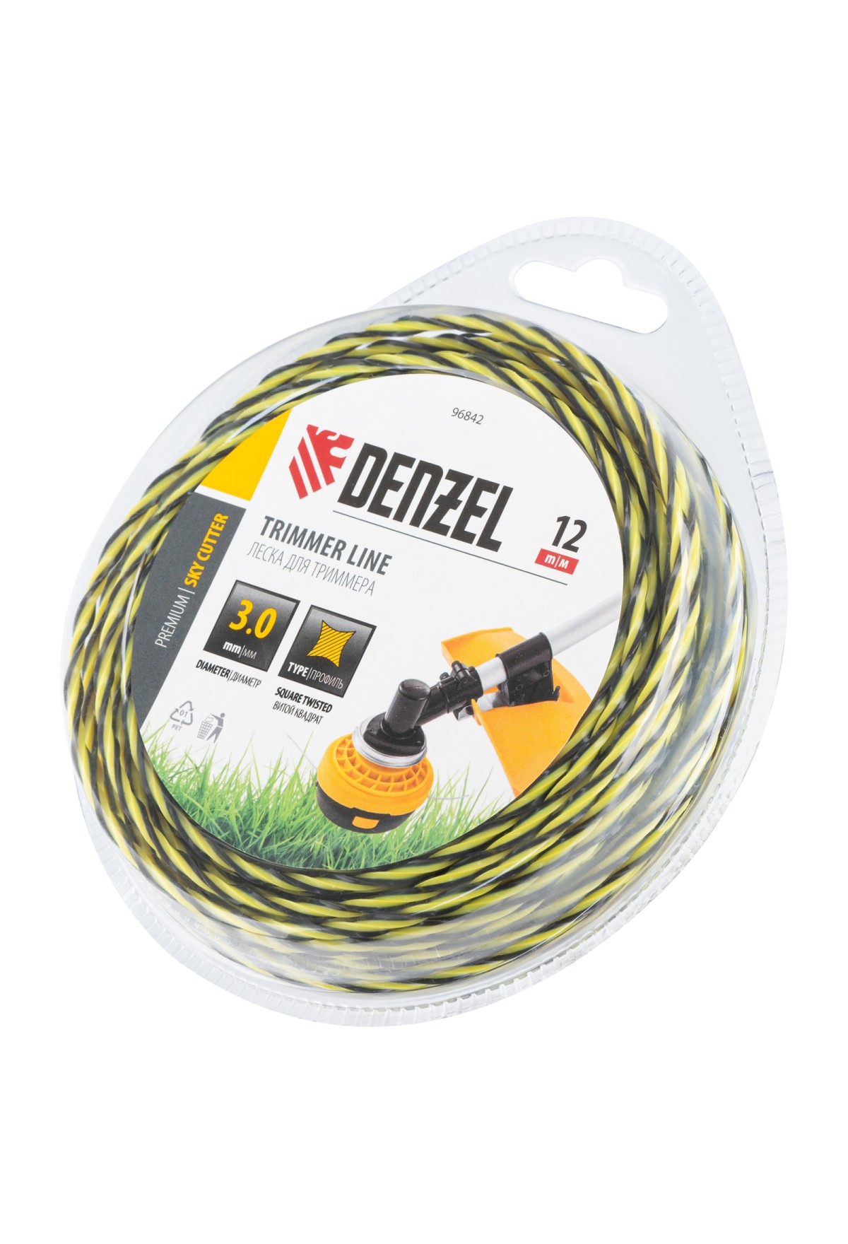 Витая квадратная леска для триммера Denzel SkyCutter 96842 с двухкомпонентной структурой, 3,0 мм х 15 м, в блистере, — расходный материал для бензиновых триммеров с объемом двигателя 25-52 см3. Благодаря агрессивному профилю леска обеспечивает высокую скорость работы, эффективно скашивая густую траву, сорняки, а также растения с жесткими стеблями. Пригодится владельцам дачных участков.