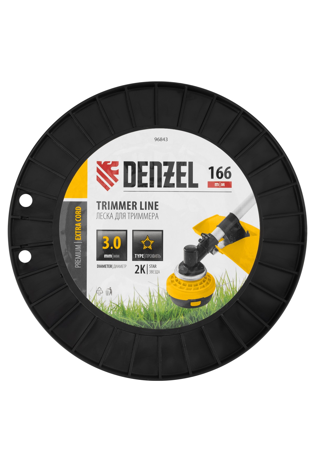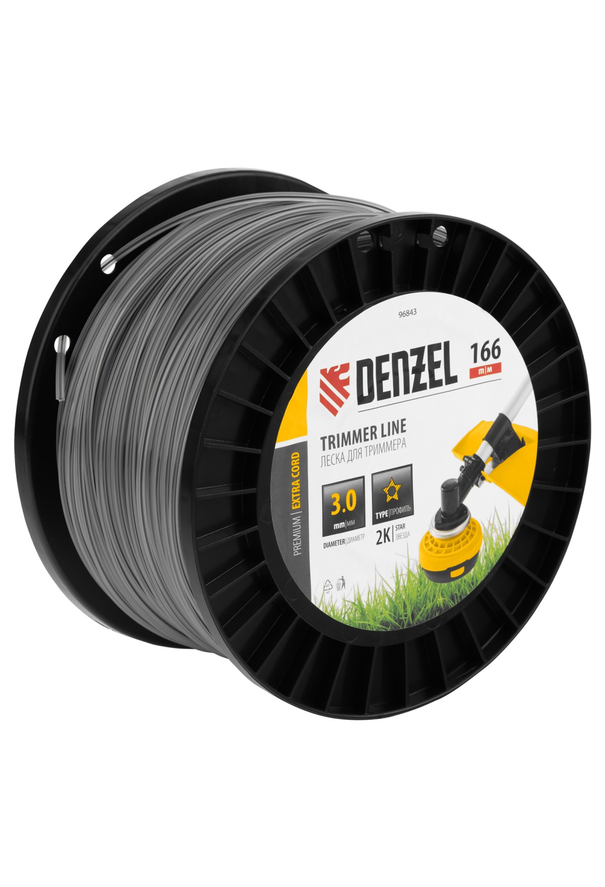 Двухкомпонентная леска для триммера Denzel EXTRA CORD 96843 с сечением «звезда», 3,0 мм х 166 м, на DIN-катушке, устанавливается на бензокосы с объемом двигателя 25-52 см3. Благодаря агрессивному профилю обеспечивает высокую производительность и позволяет максимально быстро скосить траву на участке большой площади. Леска подходит для профессионального применения, пригодится также владельцам загородных участков.
