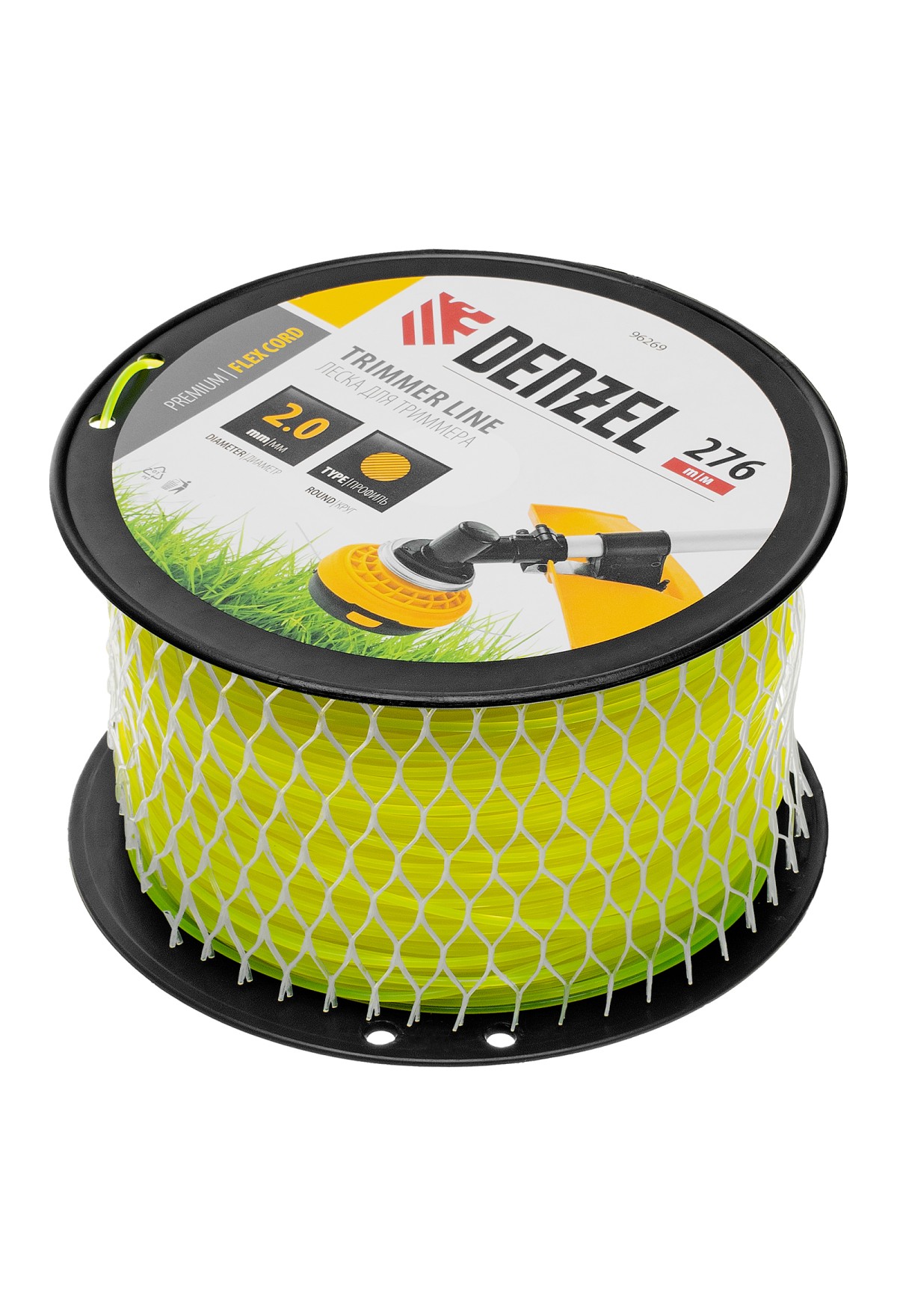 Леска для триммера Denzel FLEX CORD 96269 круглого сечения, диаметром 2,0 мм и длиной 276 м, на DIN-катушке, предназначена для скашивания мягкой, молодой травы. Подходит для бензиновых триммеров с объемом двигателя 25-52 см3 и электрических триммеров мощностью от 1 до 1,5 кВт.