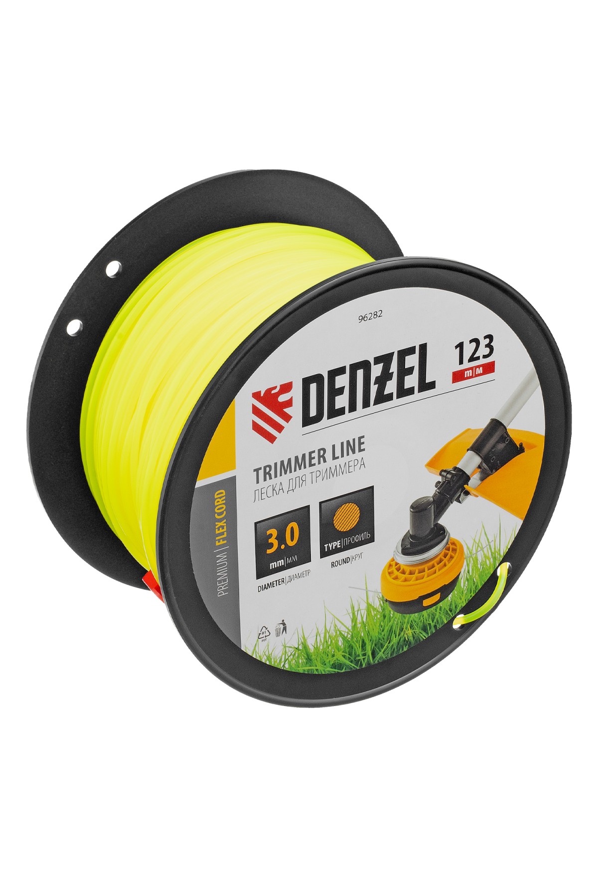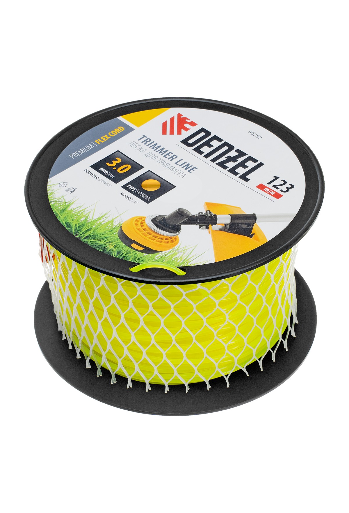 • Леска для триммера круглая, 3,0мм х 123м, на DIN катушке FLEX CORD, Denzel