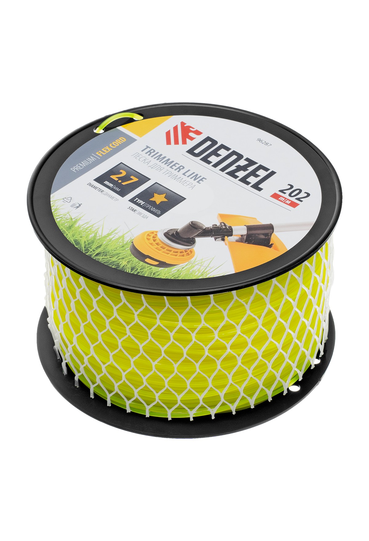 Леска для триммера Denzel FLEX CORD 96287 с сечением «звезда», диаметром 2,7 мм и длиной 202 м, на DIN-катушке, предназначена для скашивания газонной травы, также справляется с крупностеблевой растительностью. Эффективна даже на замусоренной территории. Заправляется в катушку бензиновых триммеров с объемом двигателя 25-52 см3.