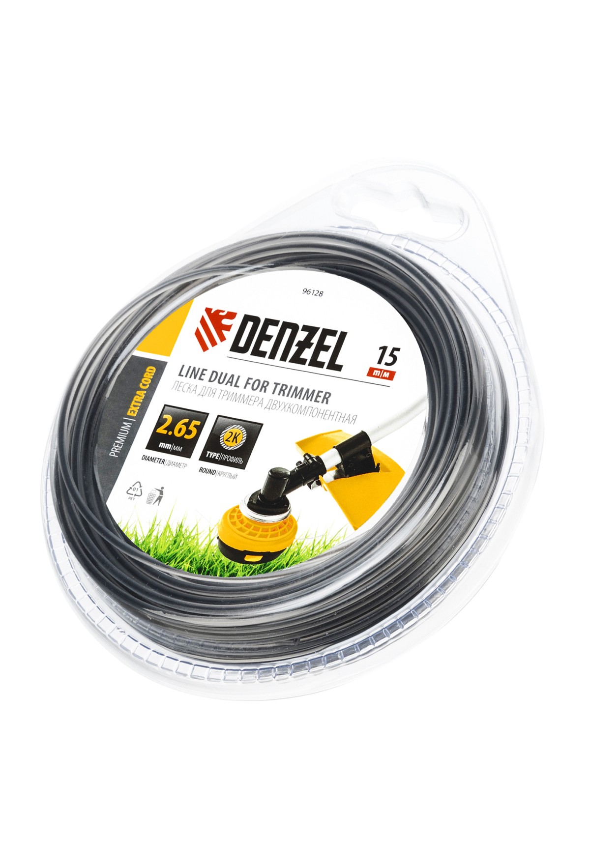 Двухкомпонентная леска Denzel Extra cord 96128 круглого сечения, размером 2,65 мм х 15 м, используется с бензиновыми триммерами высокой мощности. Подходит для покоса как молодой, так и сухой травы, бурьяна, молодой поросли малины и других кустарников. Леска состоит из двух частей — высокопрочного сердечника и пластичной внешней оболочки. Такое решение повышает рабочий ресурс режущего элемента до 40% по сравнению с традиционными лесками.