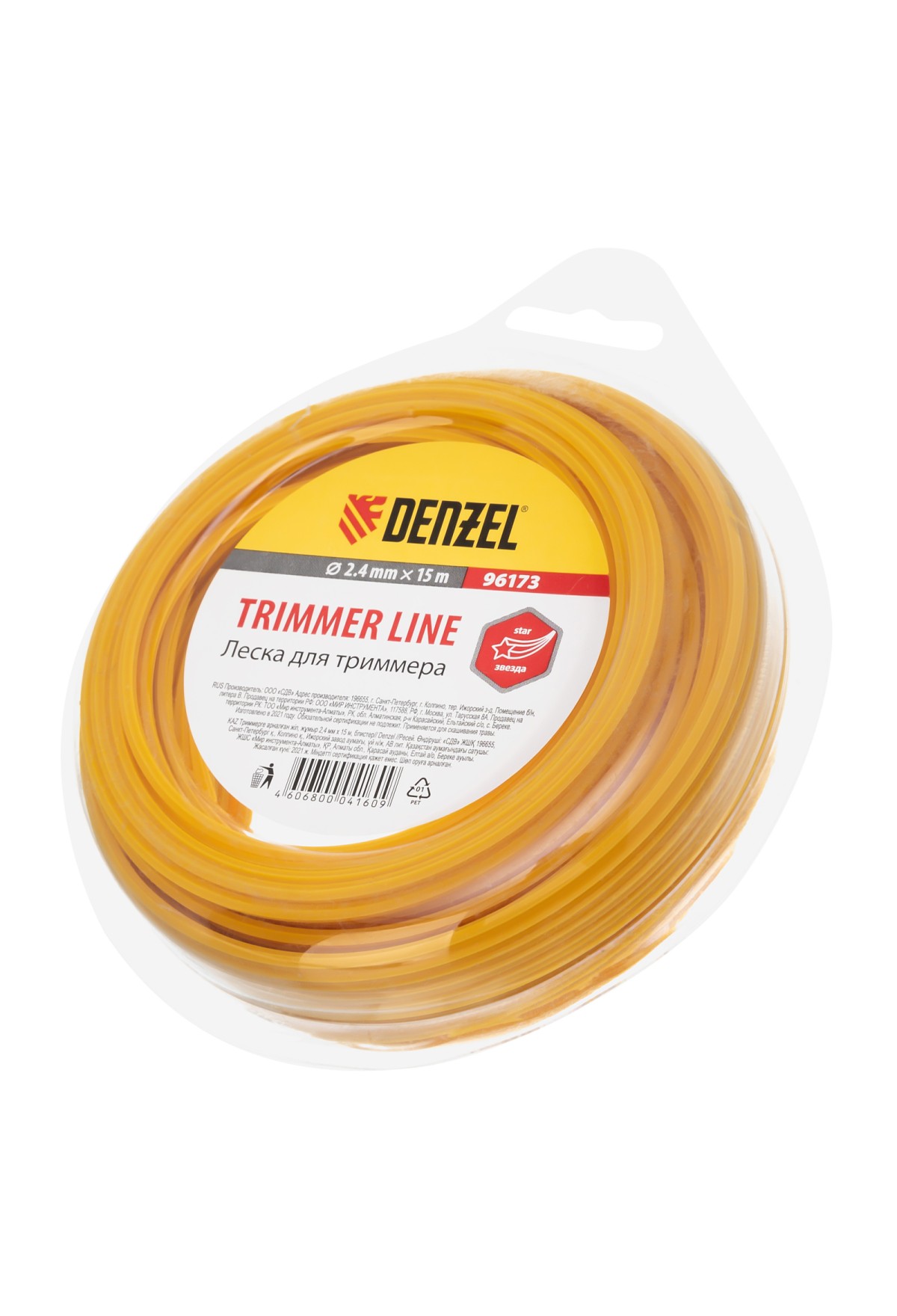 Леска Denzel 96173 размером 2,4 мм х 15 м может заправляться в катушку электрического или бензинового триммера. Форма сечения «звезда» обеспечивает высокое качество скашивания травы, бурьяна и высохшей растительности. Работать такой леской можно на ровных участках без камней.