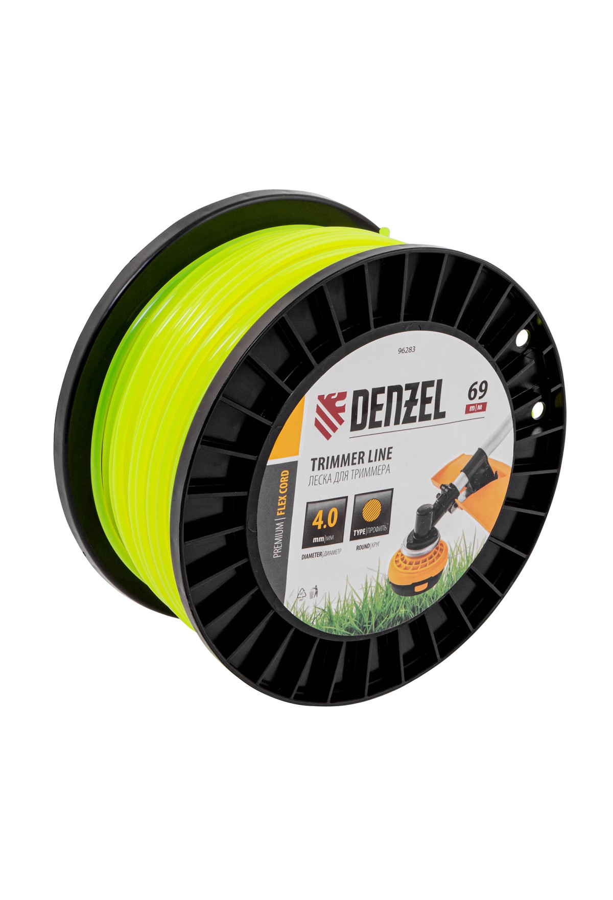 Леска для триммера круглая, 4,0мм х 69м, на DIN катушке FLEX CORD, Denzel