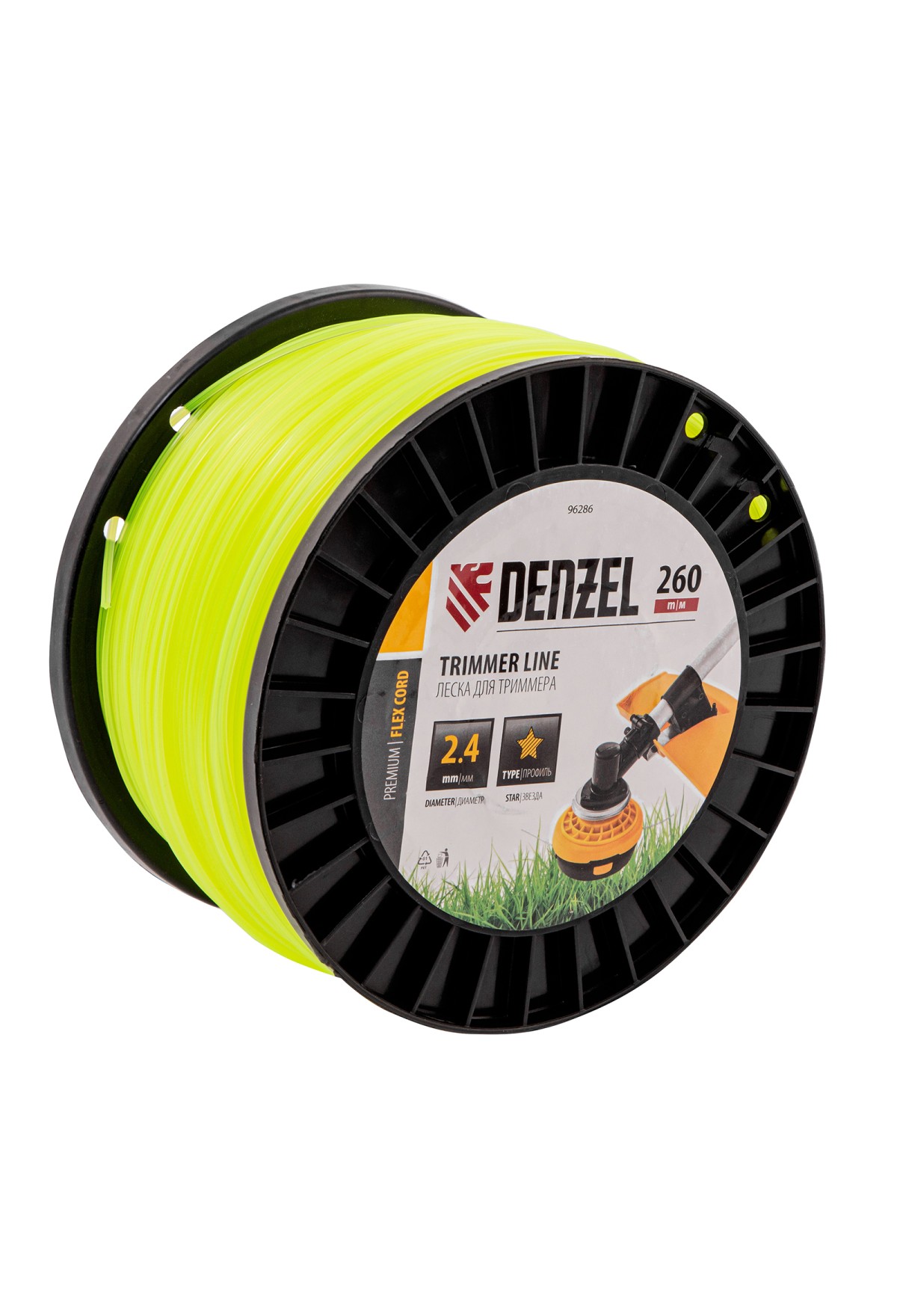 Леска для триммера Denzel FLEX CORD 96286 с сечением «звезда», диаметром 2,4 мм и длиной 260 м, на DIN-катушке, предназначена для скашивания газонной травы, также справляется с крупностеблевой растительностью. Эффективна даже на замусоренной территории. Заправляется в катушку бензотриммеров с объемом двигателя 25-52 см3 и электротриммеров мощностью от 1 до 1,5 кВт.