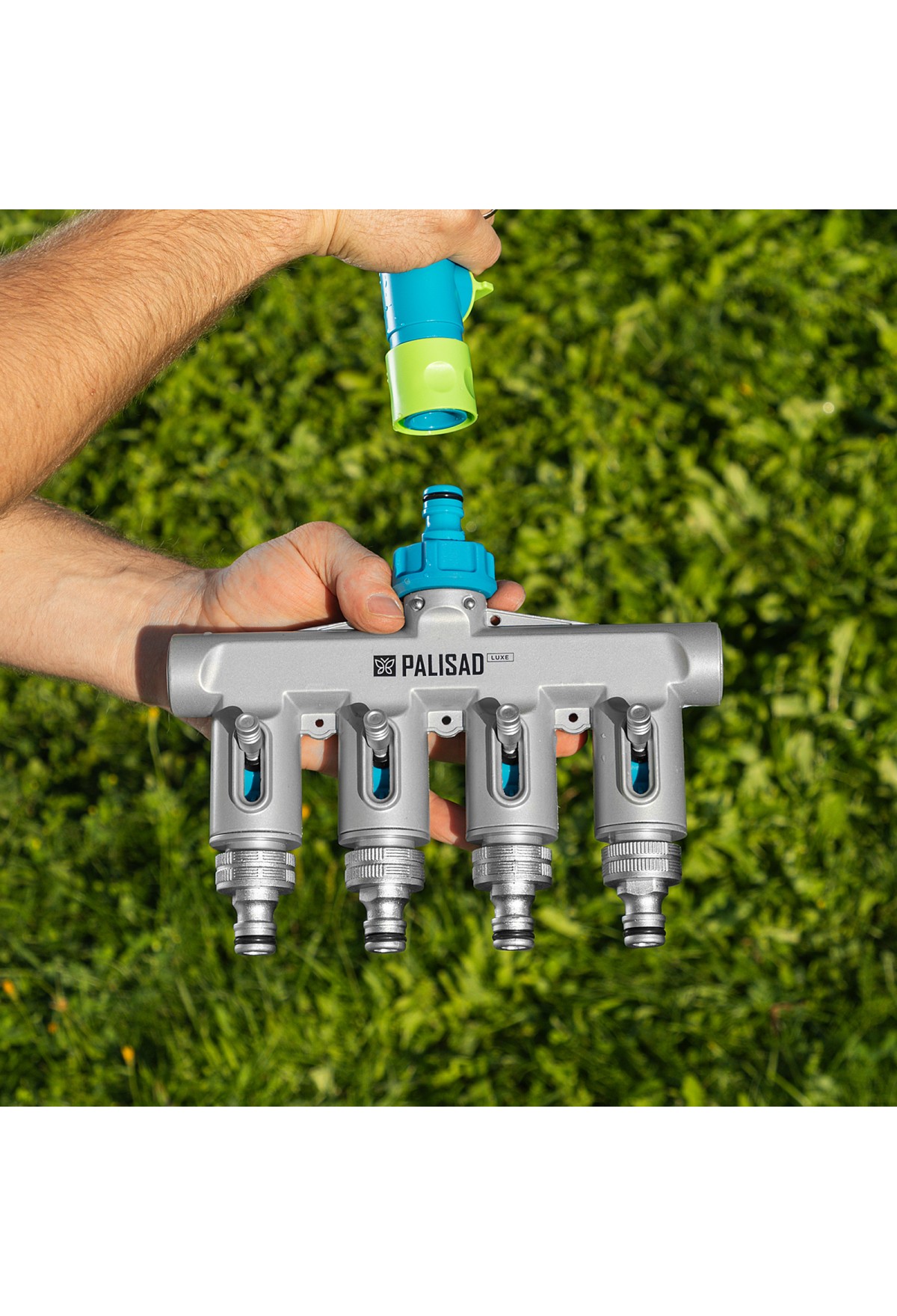 Четырехканальный штуцерный разветвитель Palisad LUXE 65833 с внутренней резьбой 3/4", из алюминия, предназначен для разделения водопроводной магистрали. Его устанавливают на магистральный отвод или резьбовой кран либо подключают к линии через адаптер. Соединяется со шлангами при помощи адаптеров. Поможет смонтировать надежную систему полива на дачном участке.