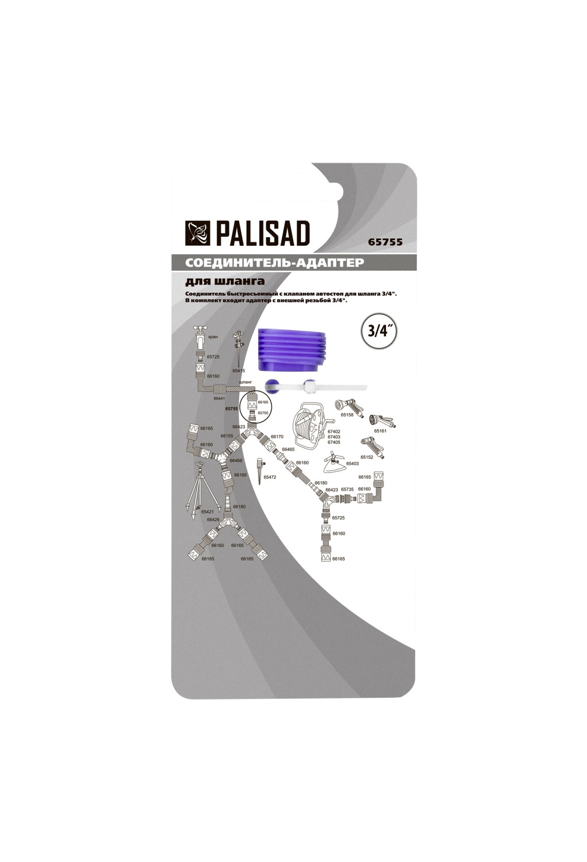 Технические характеристики Соединитель-адаптер пластмассовый, 3/4, внешняя резьба, соединитель шланга 3/4 Palisad