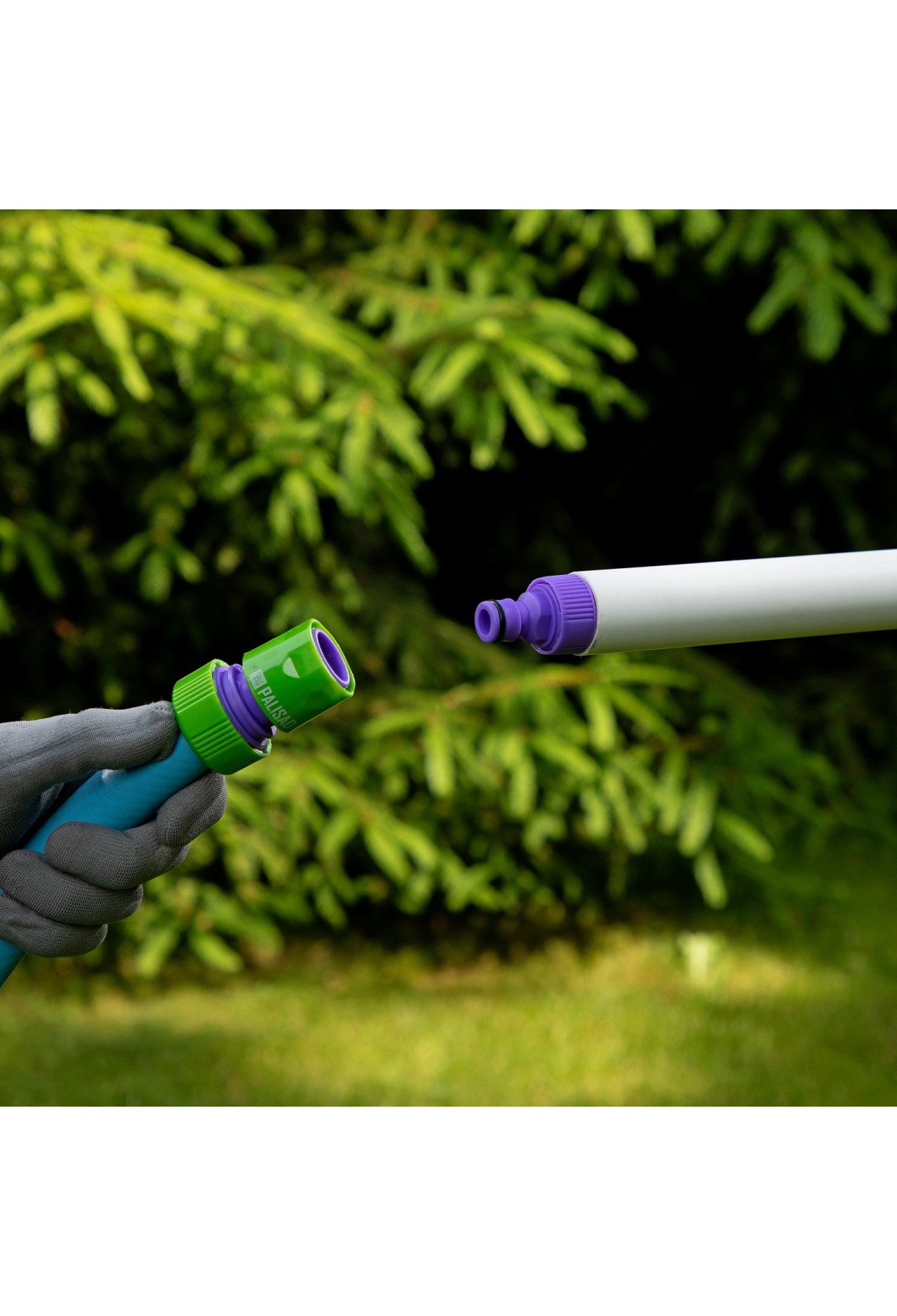 - Универсальность — штуцерный выход подходит для всех элементов поливочных систем Palisad.