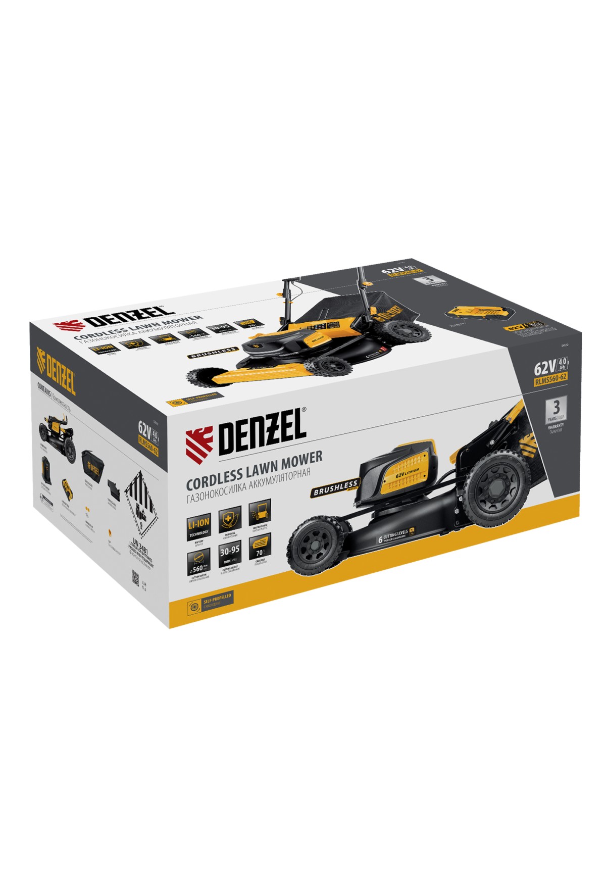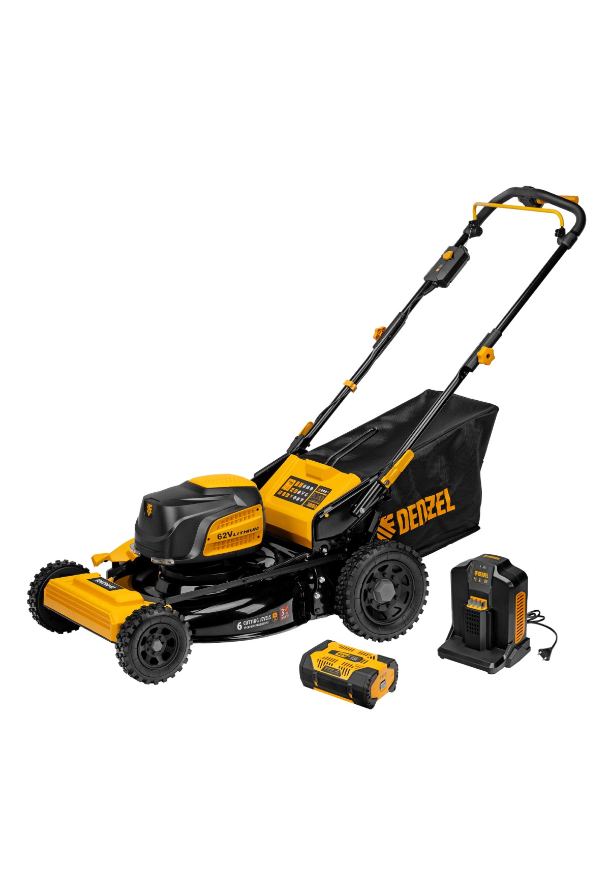 | Комплектация | Газонокосилка в сборе с ножом и колесами - 1 штТравосборник - 1 штДефлектор бокового выброса - 1 штАккумуляторная батарея Li-Ion 62 В, 4 Ач - 1 штЗарядное устройство - 1 штРуководство по эксплуатации с гарантийным талоном - 1 шт |