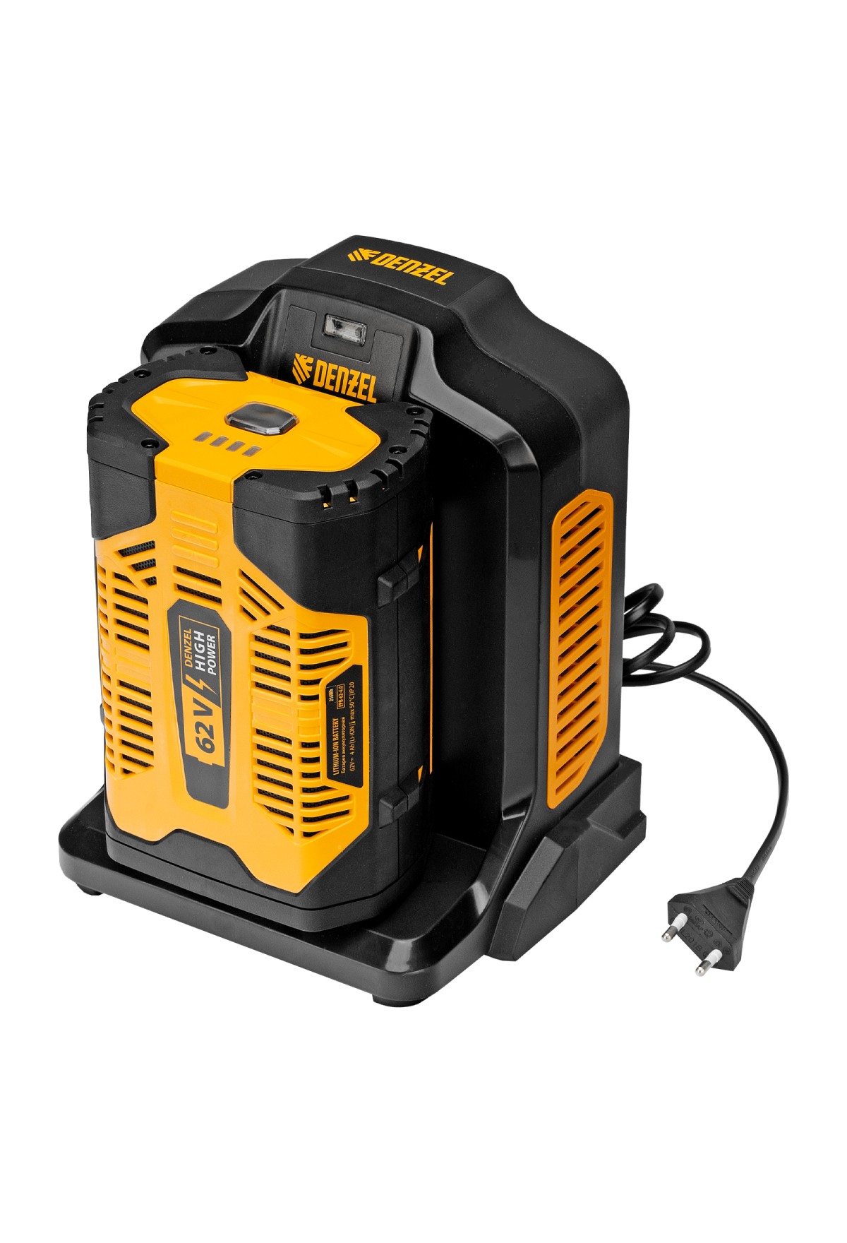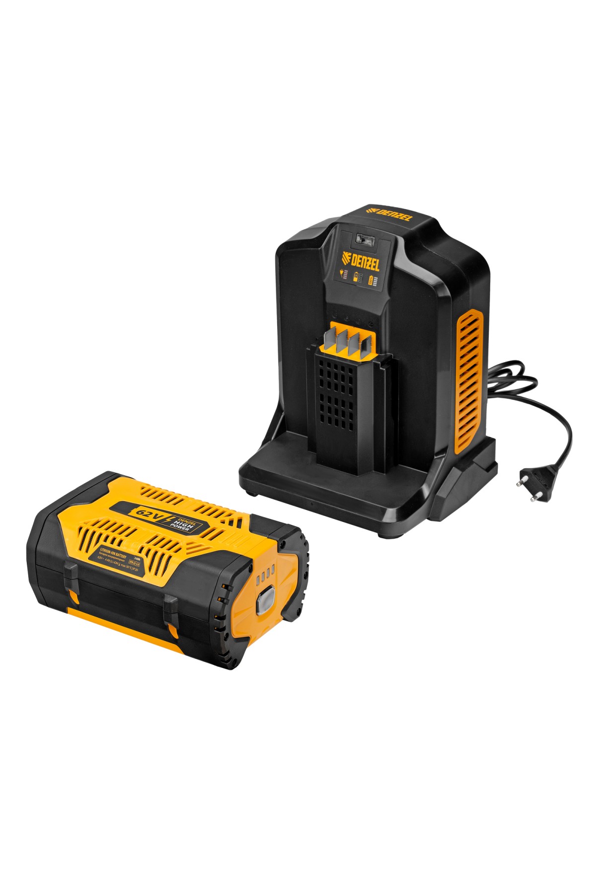 Инновационная аккумуляторная платформа Denzel High Power 62V разработана специально для инструмента большой мощности, гарантирует высокую производительность и продолжительную работу. Интеллектуальная система распознавания типа нагрузки оптимизирует расход заряда. Аккумулятор имеет разъем USB, поэтому его можно использовать как Power Bank: заряжать смартфон, планшетный компьютер и другую мобильную технику.