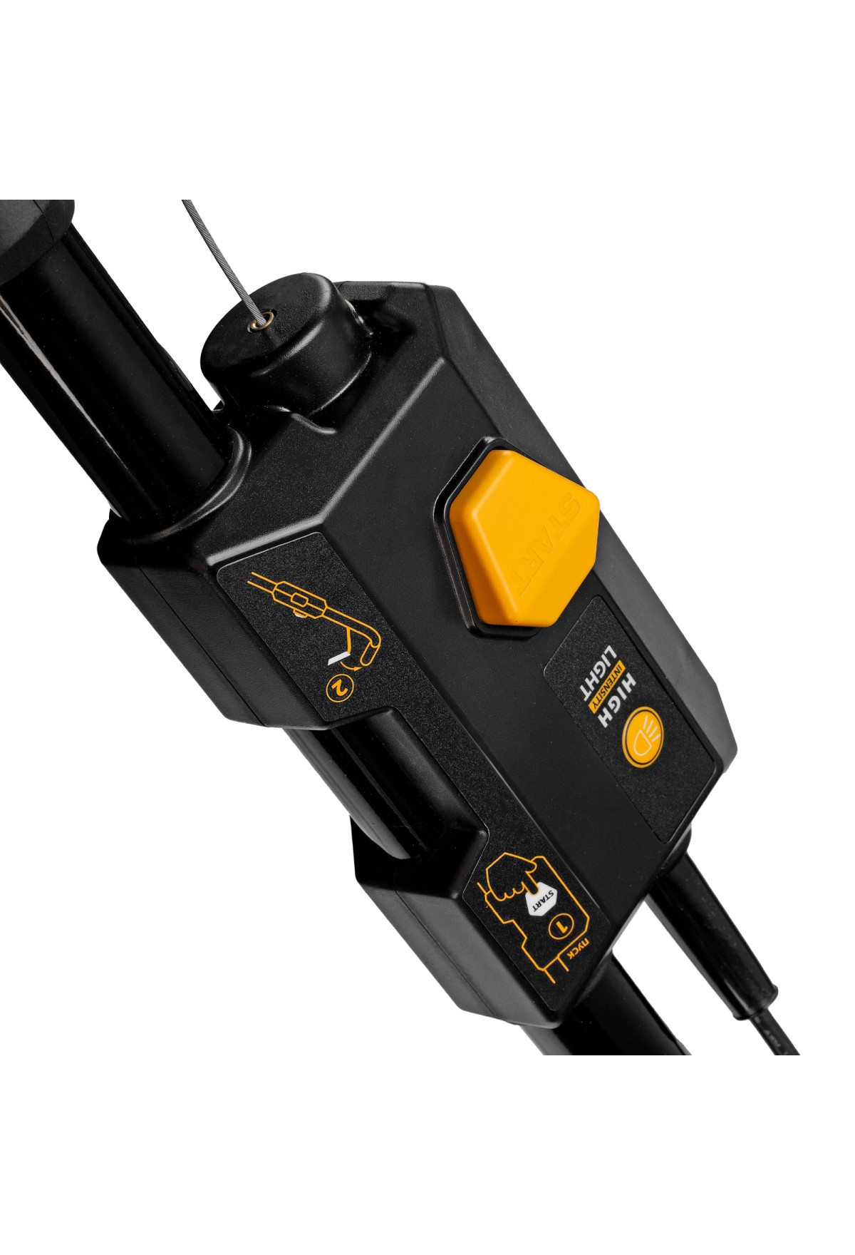- Эффективное скашивание в условиях недостаточной освещенности — производитель предусмотрел 2 LED-фары в передней части корпуса.