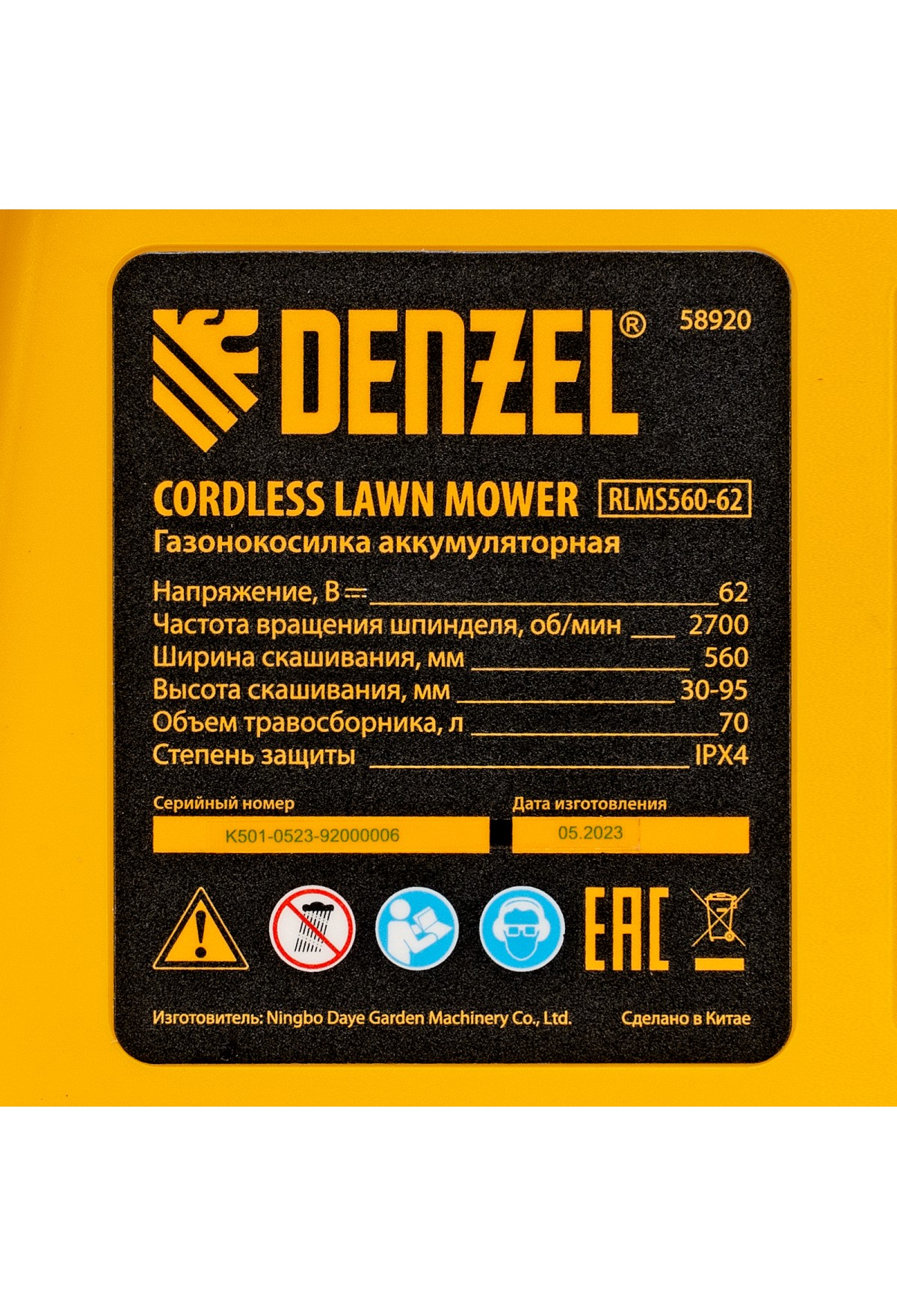 - Универсальность — аккумулятор подходит к любому инструменту, работающему на платформе Denzel High Power 62V.