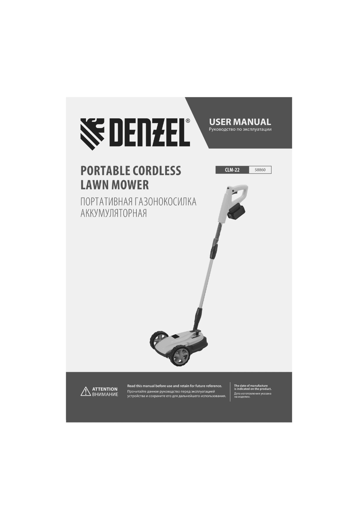 Портативная аккумуляторная газонокосилка CLM-22, Li-ion, 20В, 220 мм // Denzel