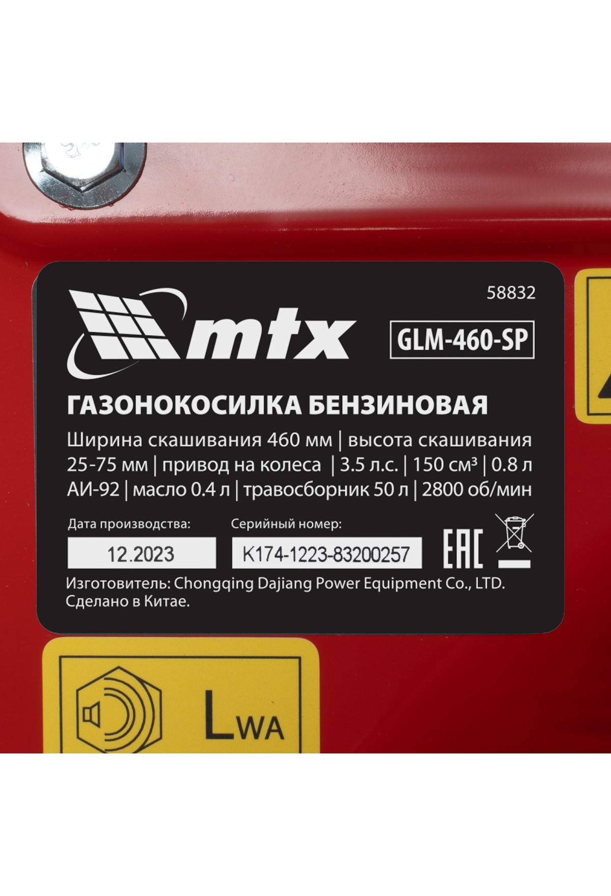 Бензиновая газонокосилка MTX GLM-460-SP 58832 с травосборником на 50 л, двигателем объемом 150 см3 и приводом на колеса обеспечивает ширину скашивания 46 см. Предназначена для стрижки газонов, скашивания травы в садах и огородах, оптимальна для ухода за небольшим приусадебным участком. Высота скашивания регулируется в диапазоне 25-75 мм (всего предусмотрено 8 уровней), что позволяет более точно и ровно подстричь газон и придать ему аккуратный вид.