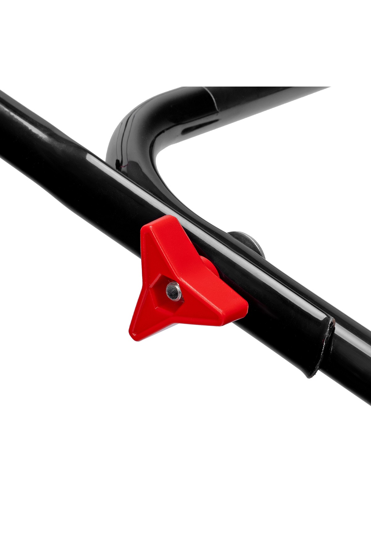 - Удобный контроль заполненности травосборника — при пустой емкости флажок индикатора поднят или колеблется, при полной — покоится.