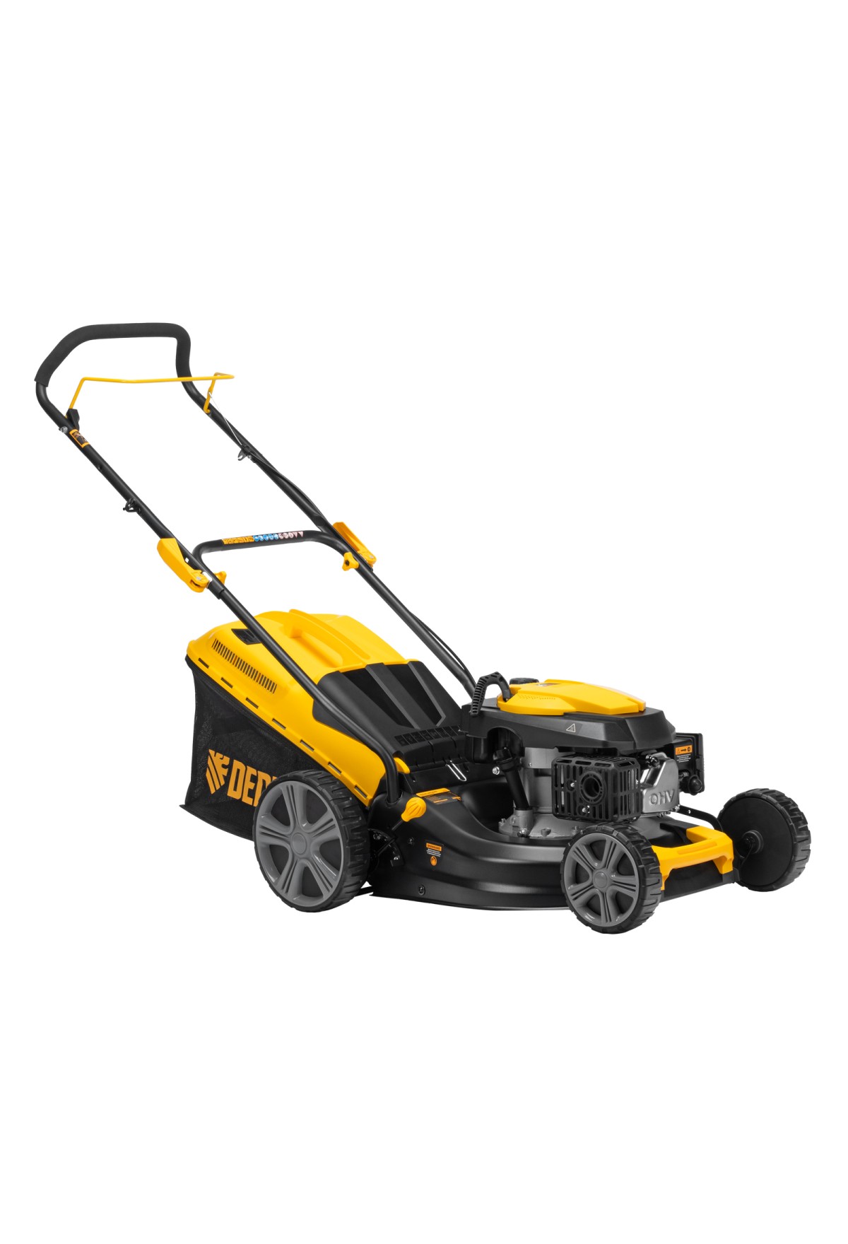 - Качественные комплектующие — хромированный цилиндр, закаленный коленвал, облегченный поршень и свеча зажигания BOSCH/NGK значительно повышают надежность газонокосилки.