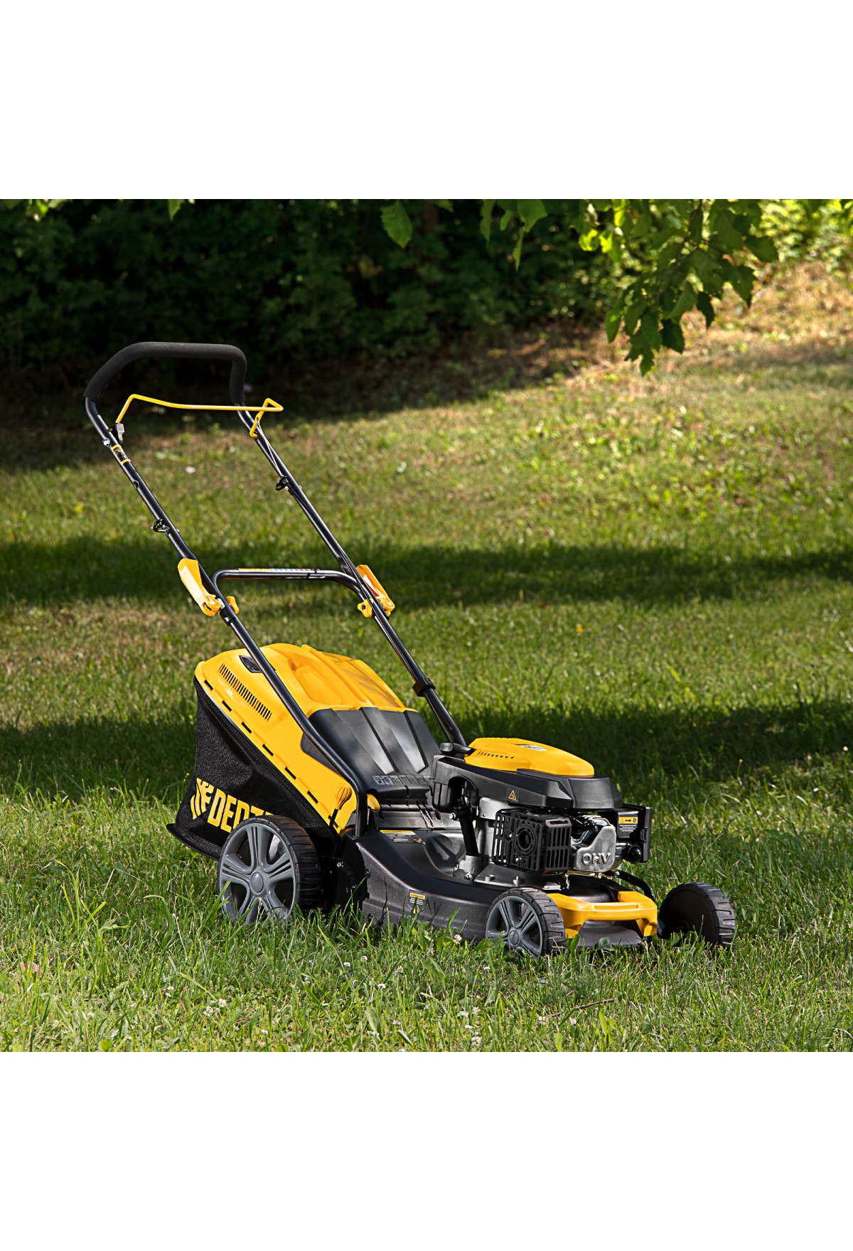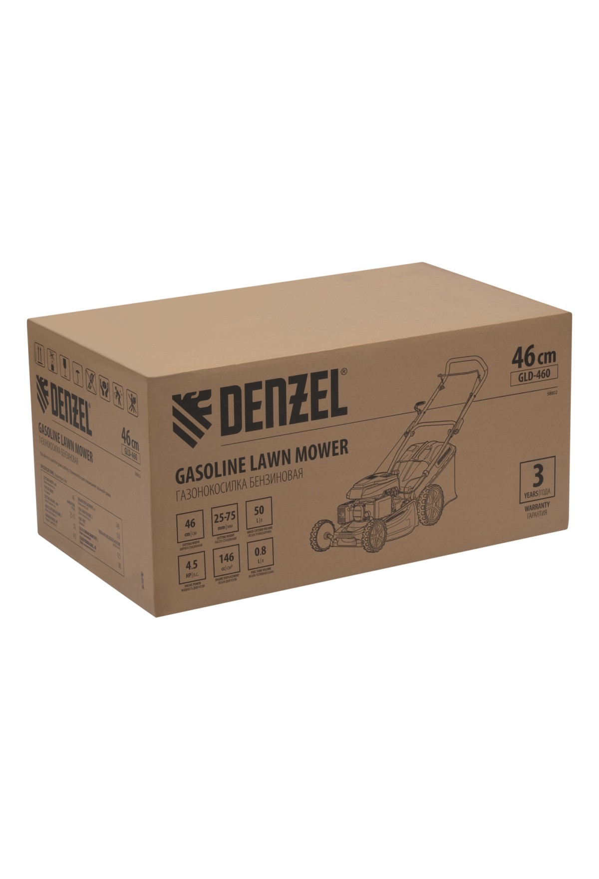 Газонокосилка бензиновая Denzel GLD-460 58802 с двигателем объемом 146 см3, ручным приводом и травосборником на 50 л, с 7 уровнями скашивания и шириной прохода 46 см, предназначена для уходом за молодой травой на приусадебном участке. Благодаря мощности двигателя 4,5 л.с. и ширине скашивания 46 см/проход за 1,5 часа удастся обработать до 2500 м2.