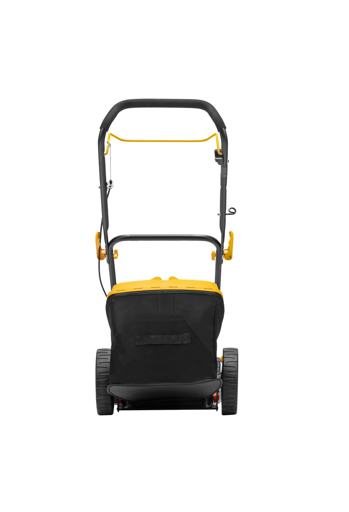 - Высокая эффективность — усиленный стальной корпус, закаленный до твердости 45 HRC нож и колеса увеличенного диаметра обеспечивают лучшее втягивание травы и свободную проходимость без повреждения газона.
