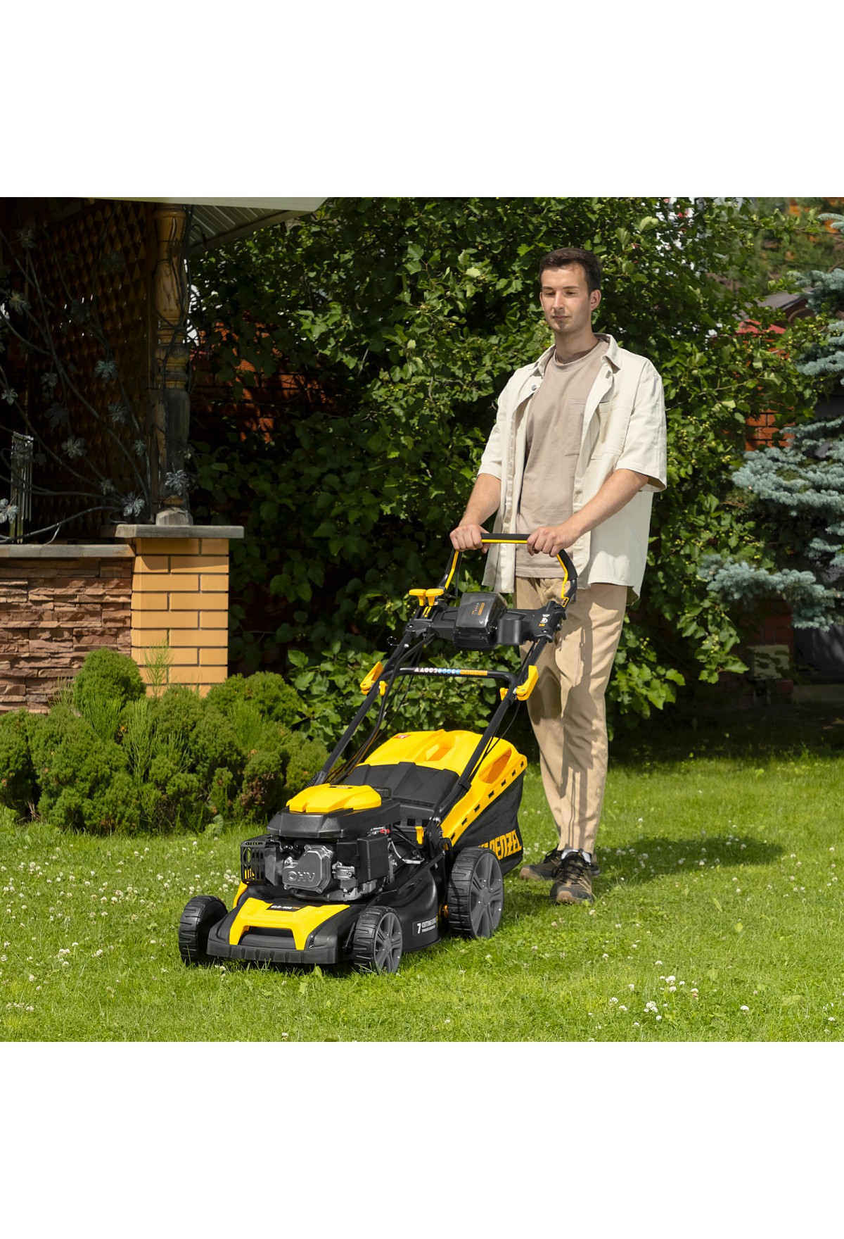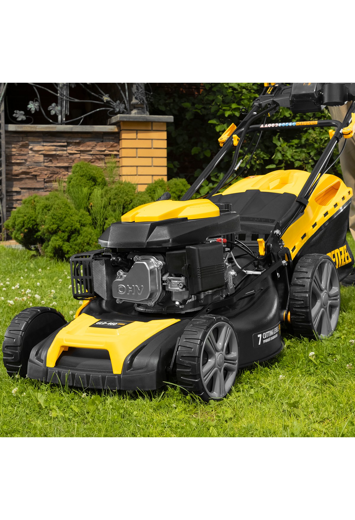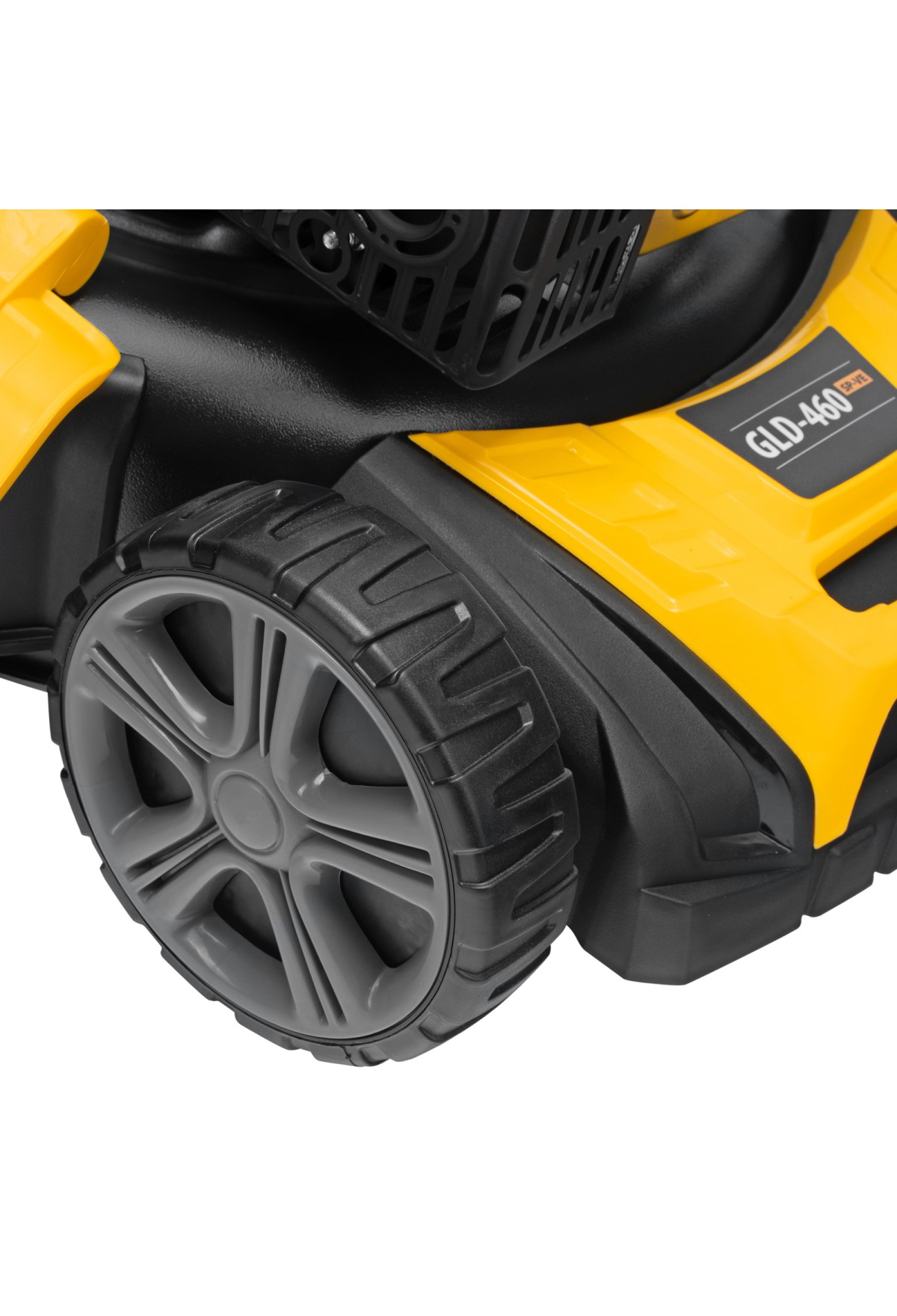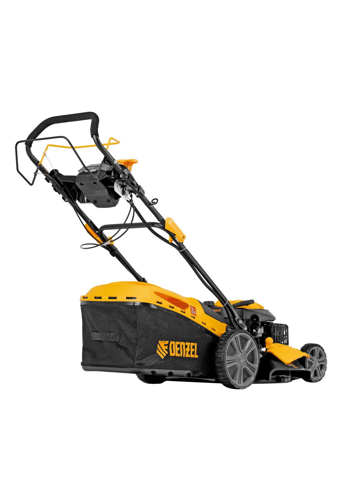 Бензиновая газонокосилка Denzel GLD-460SP-VE 58809 с приводом на колеса и вариатором оснащена двигателем объемом 146 см3 и электрическим стартером. Обеспечивает ширину скашивания 46 см за один проход и собирает траву в травосборник объемом 50 л. Идеально подходит для благоустройства дачной территории, обновления газонов и дорожек. Благодаря двигателю мощностью 4,5 л.с. справляется даже с густым бурьяном.